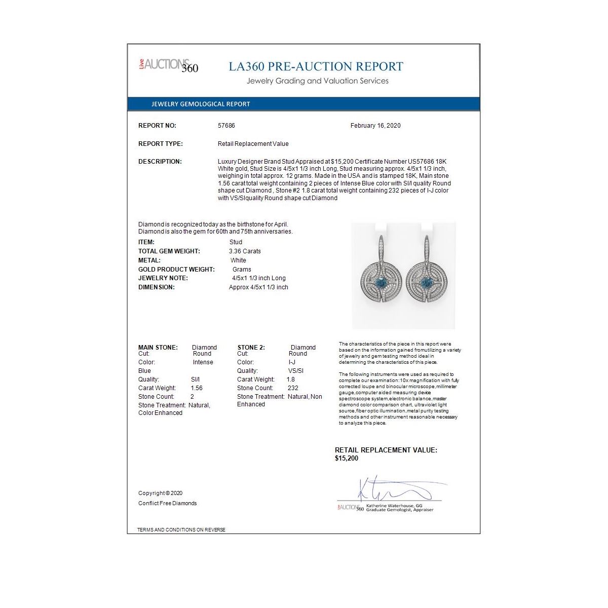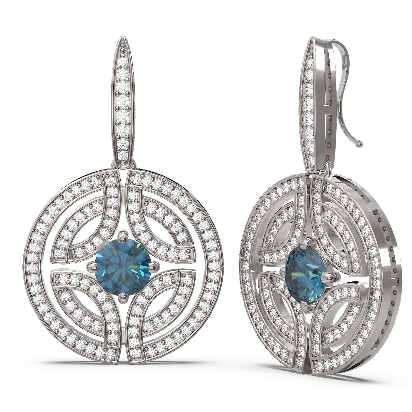 REF-368F8M - SKU: 57686 ---- 3.36 ctw Intense Blue Diamond Earrings 18K White Gold