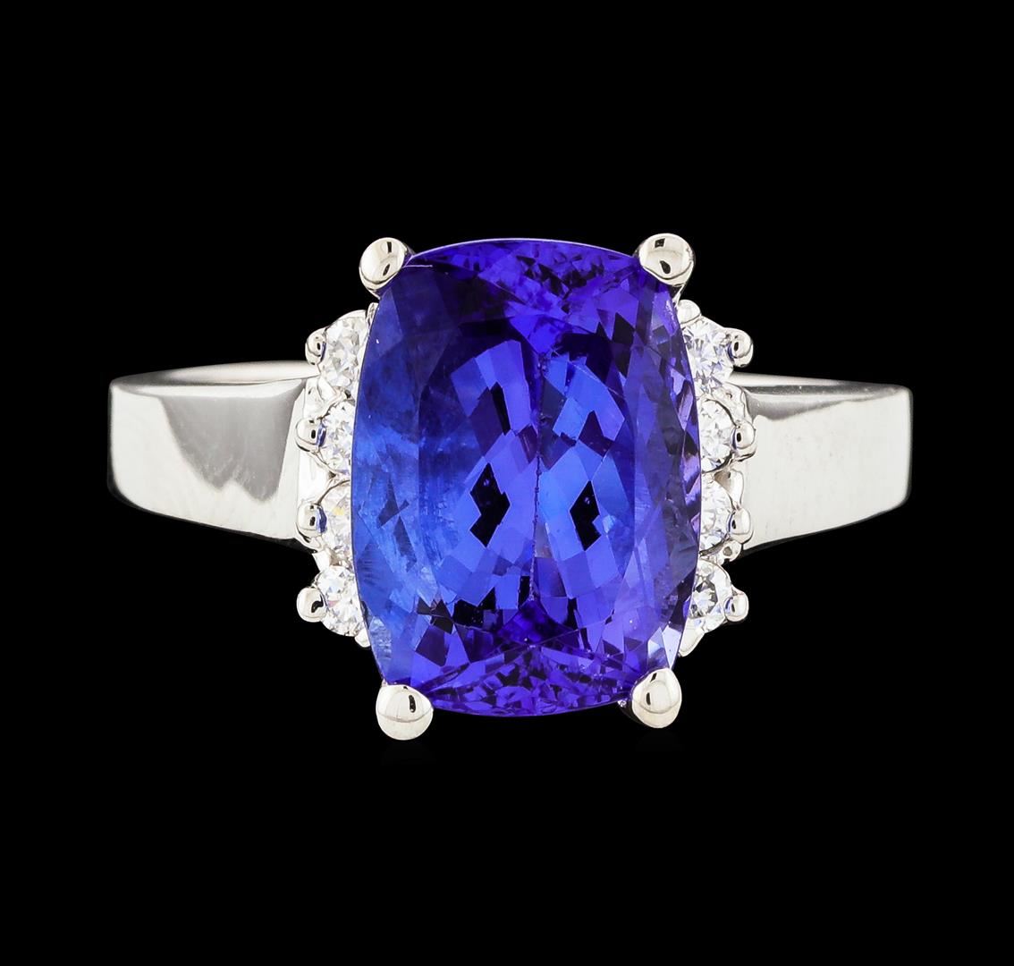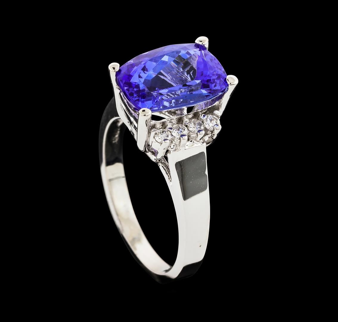 One ring : 14KT white gold weighing 6.24gm containing one tanzanite center stone with a total weight of 03.36ct and side diamonds weighing 0.22ctw.