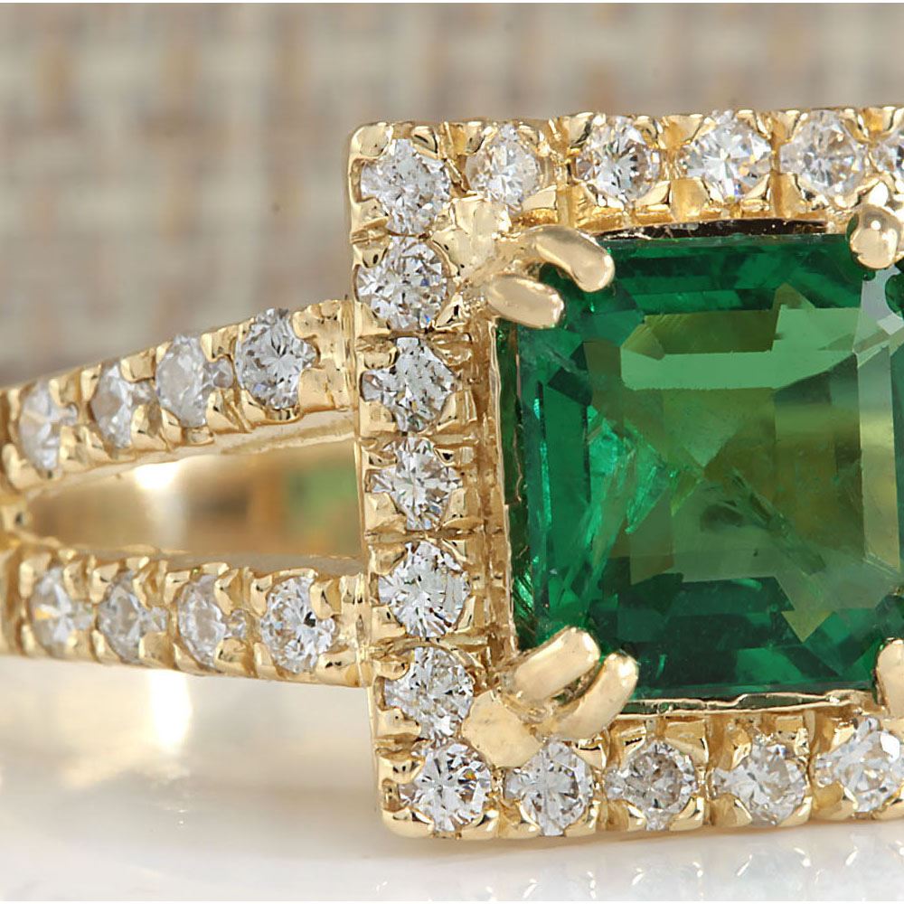 3.37 CTW Natural Emerald And Diamond Ring In 14K Yellow Gold