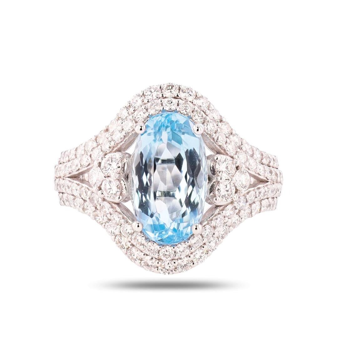 3.37 ctw Aquamarine and 1.21 ctw Diamond Platinum Ring
