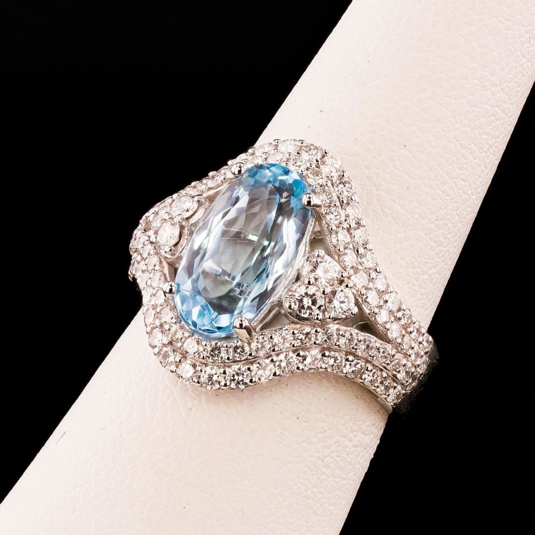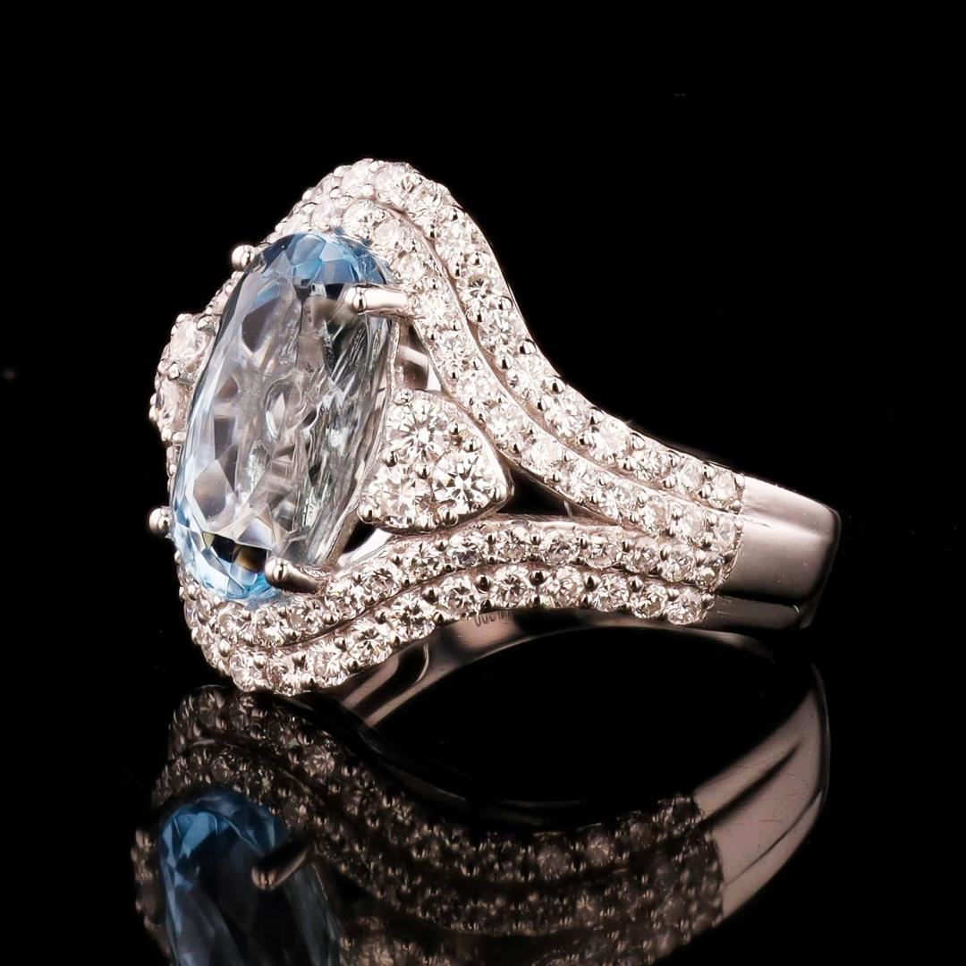 3.37 ctw Aquamarine and 1.21 ctw Diamond Platinum Ring