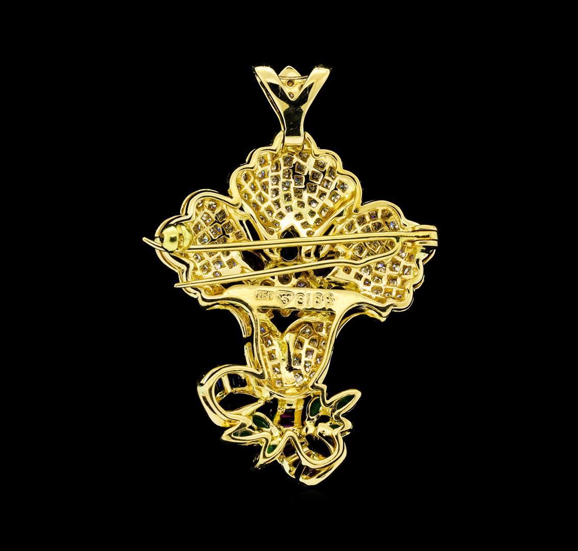 3.37 ctw Ruby, Emerald, Sapphire and Diamond Pendant-Pin - 18KT Yellow Gold