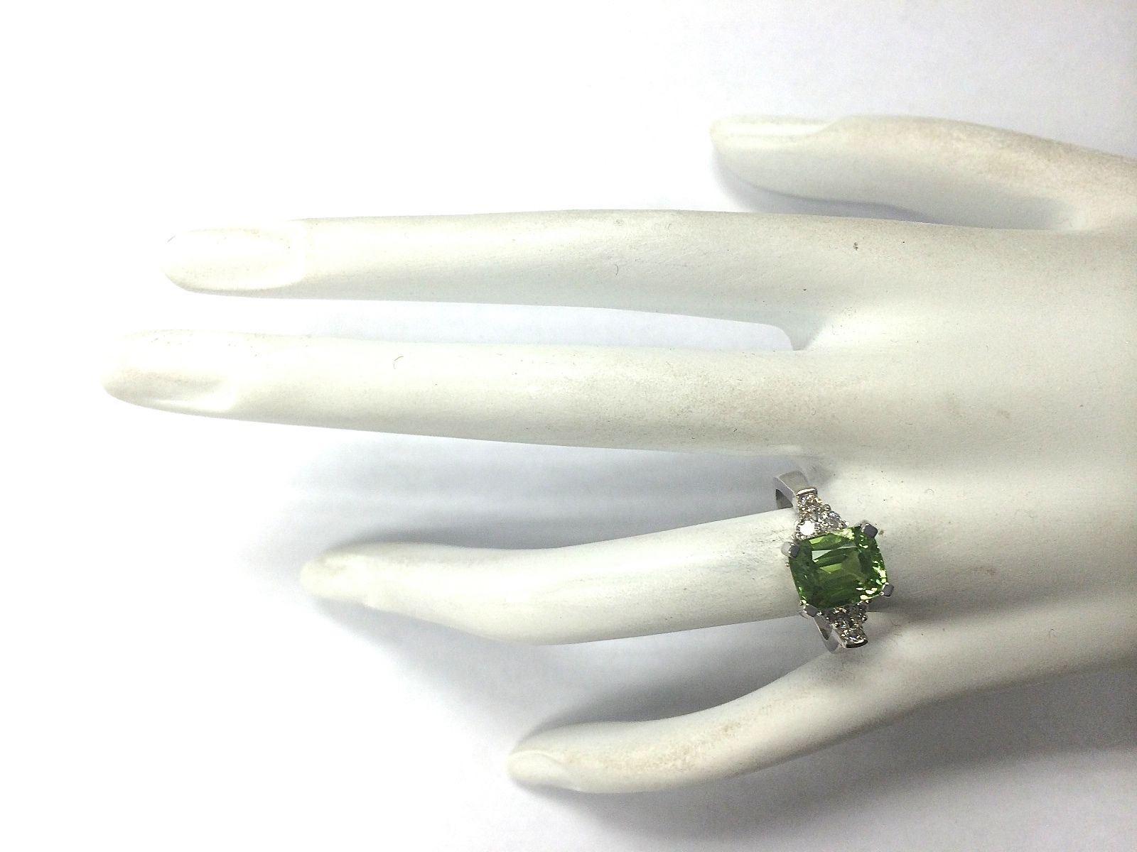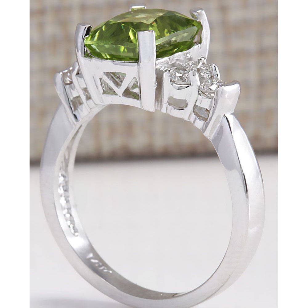 3.38 CTW Natural Green Peridot And Diamond Ring 18K Solid White Gold