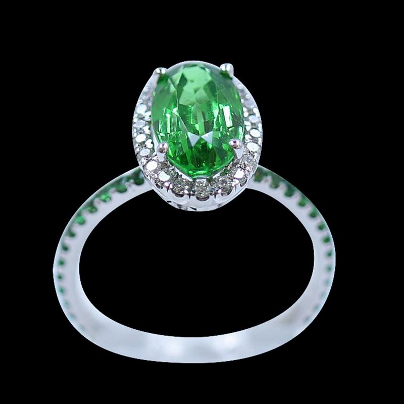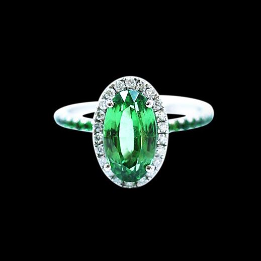 14K W/G NATURAL TSAVORITE RING:3.12 Grams/TSAVORITE:0.39ct/TSAVORITE:3.38ct/DIAMOND:0.25ct/#GVR1424