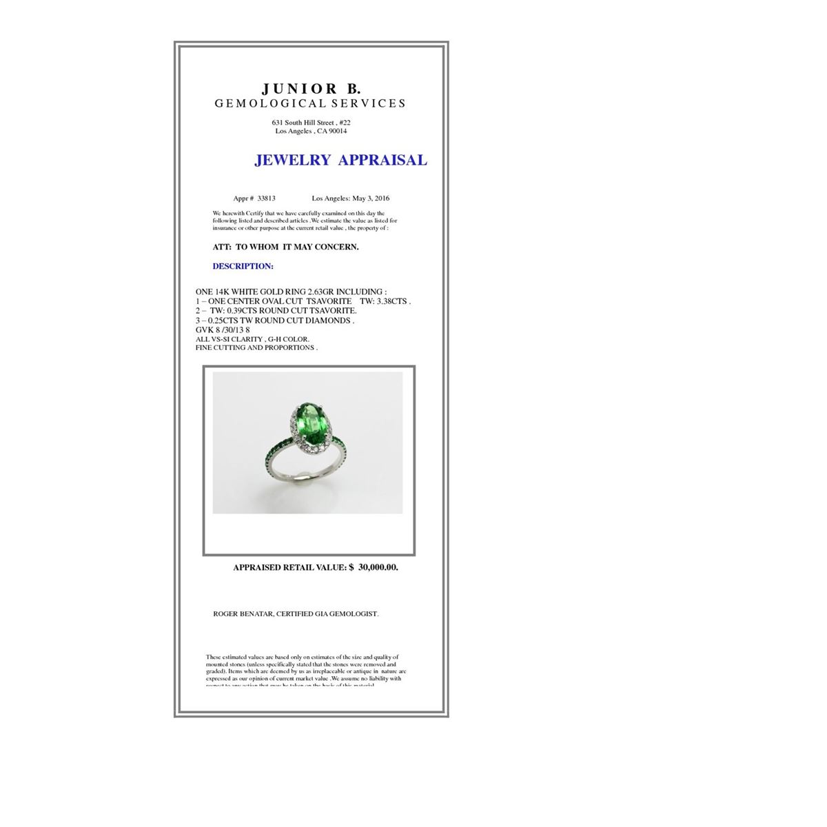 Not all jewelry, watches or loose stones are appraised and the appraisals are provided for bidders only in certain instances at the discretion of the Company. Appraisals, if any should be use to verify gemstone and or metal weights. The appraisals should not be used for valuation of any item. No guarantee, warranty or representation is intended by the Company in any appraisal. All dimensions and weights of such lots are approximate and are consistent with standards and practices in the industry. Condition reports are provided as a service to the prospective buyer. Bidders should take note that such descriptions are not warranties and that watches may need general service, change of battery or further repairs for which the buyer is solely responsible