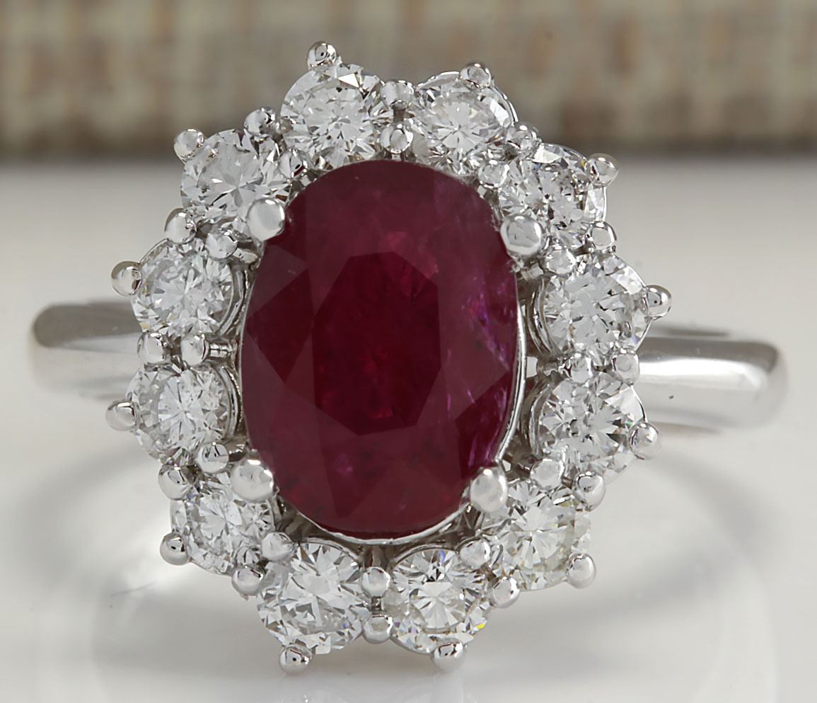 Stamped: 14K Ring Size: 6.5 Total Ring Weight: 5 Grams Diamond Weight: Total natural diamond weight is 1.10carat. SI1-SI2 clarity / G-H color Gemstone Weight: Total Natural Mozambique Ruby Weight is 2.28ctw (Measures: 9.52x7.40mm) (Heated only no glass or led treatment very nice hight quality stone) Face Measures: 16.34x14.49mm Main stone color: Red [SKU:702852]