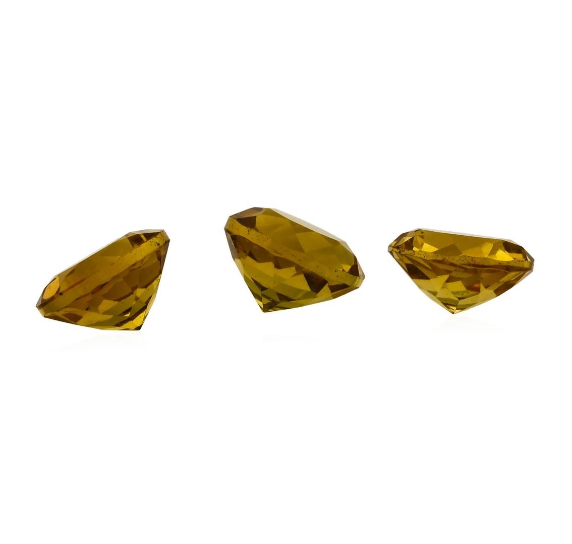 One natural round cut citrine quartz parcel of three with an exact weight of 3.39ctw., clarity is eye clean, yellowish orange, medium. Gemological Appraisals Services estimates the retail value at $169.5 GAS Appraised.