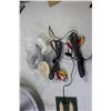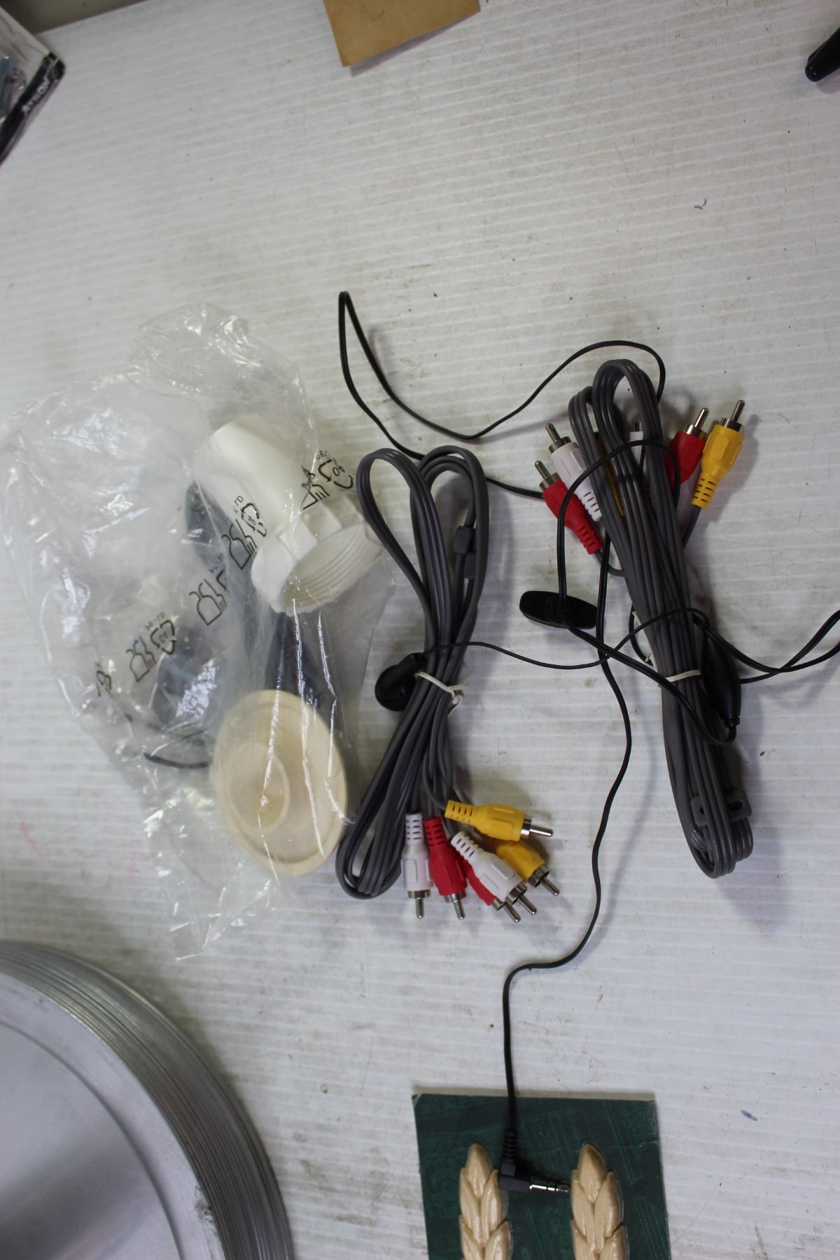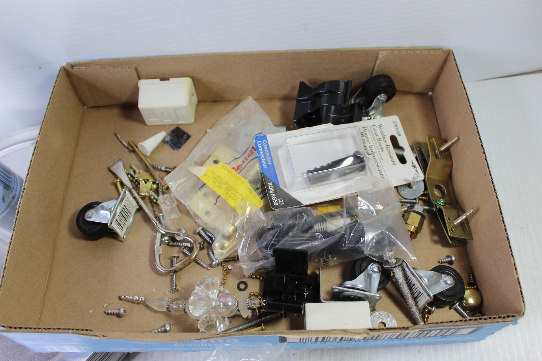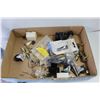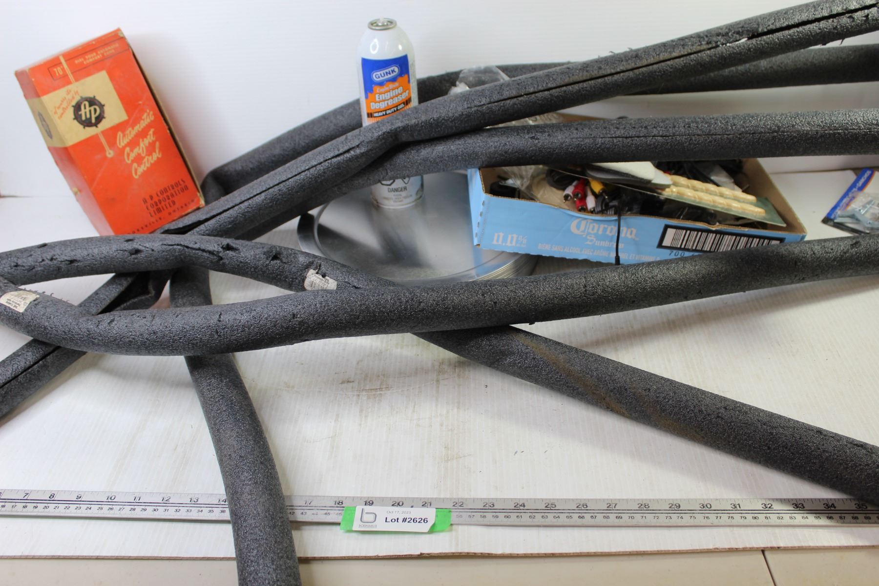 3/4" - 1/2" Foam Pipe Insulators - Vintage Honey Well Thermostat Control - Stack of Metal Plates - Engine Degreaser - Assorted Hardware - Speaker Wires - Misc. Items
