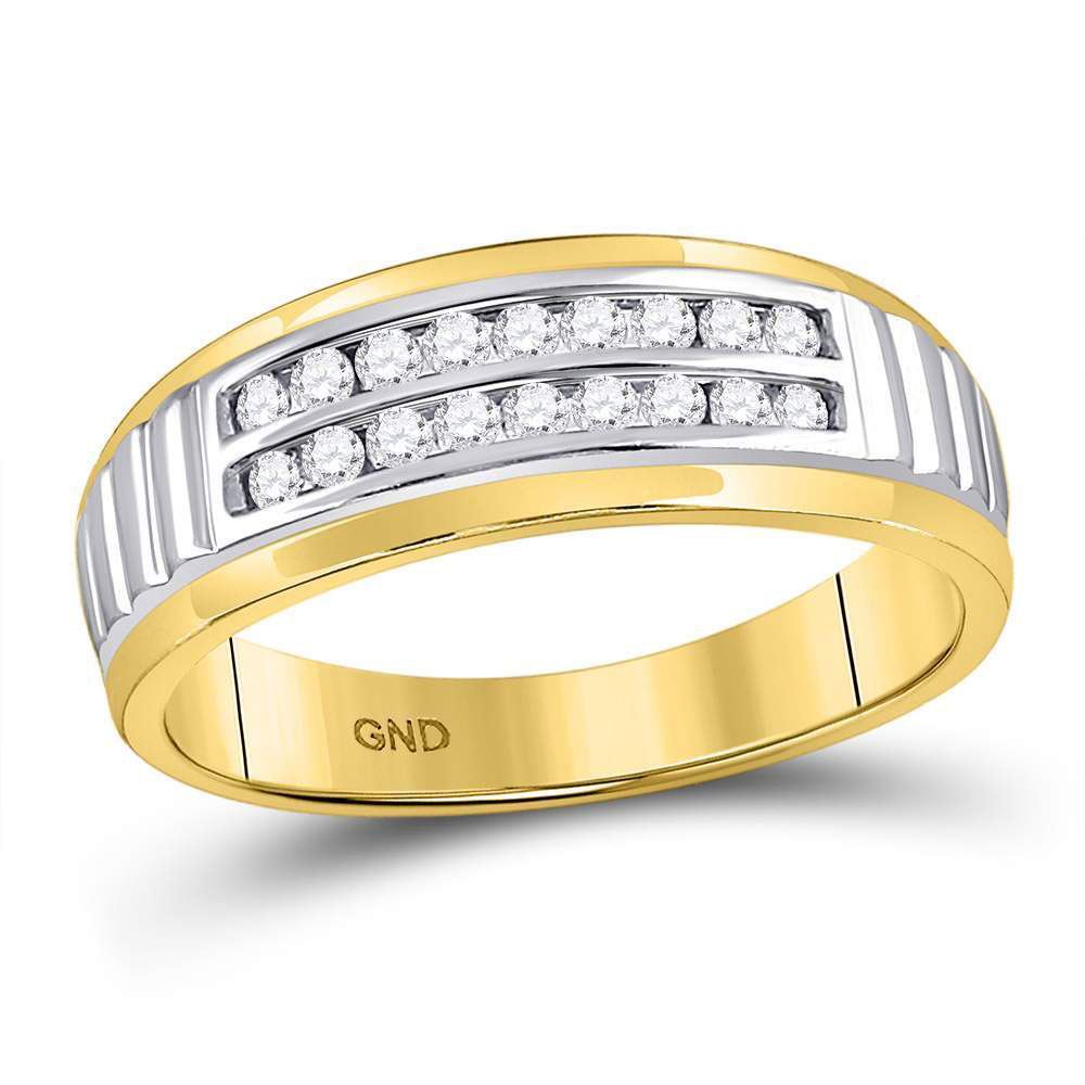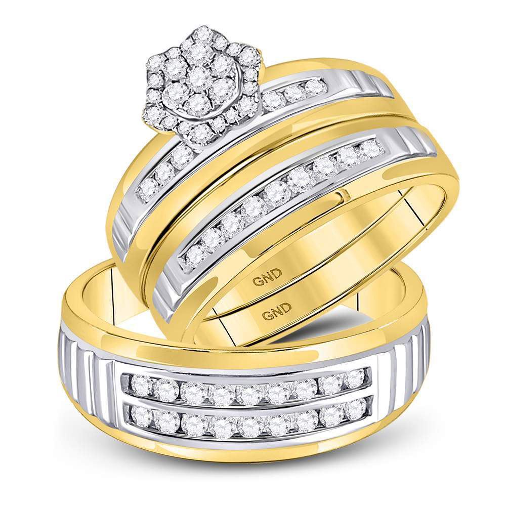 10kt Two-tone Gold His & Hers Round Diamond Cluster Matching Bridal Wedding Ring Band Set 3/4 Cttw