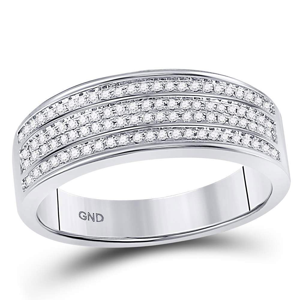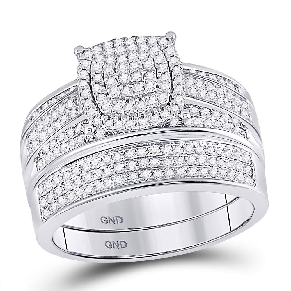 10kt White Gold His & Hers Round Diamond Cluster Matching Bridal Wedding Ring Band Set 3/4 Cttw