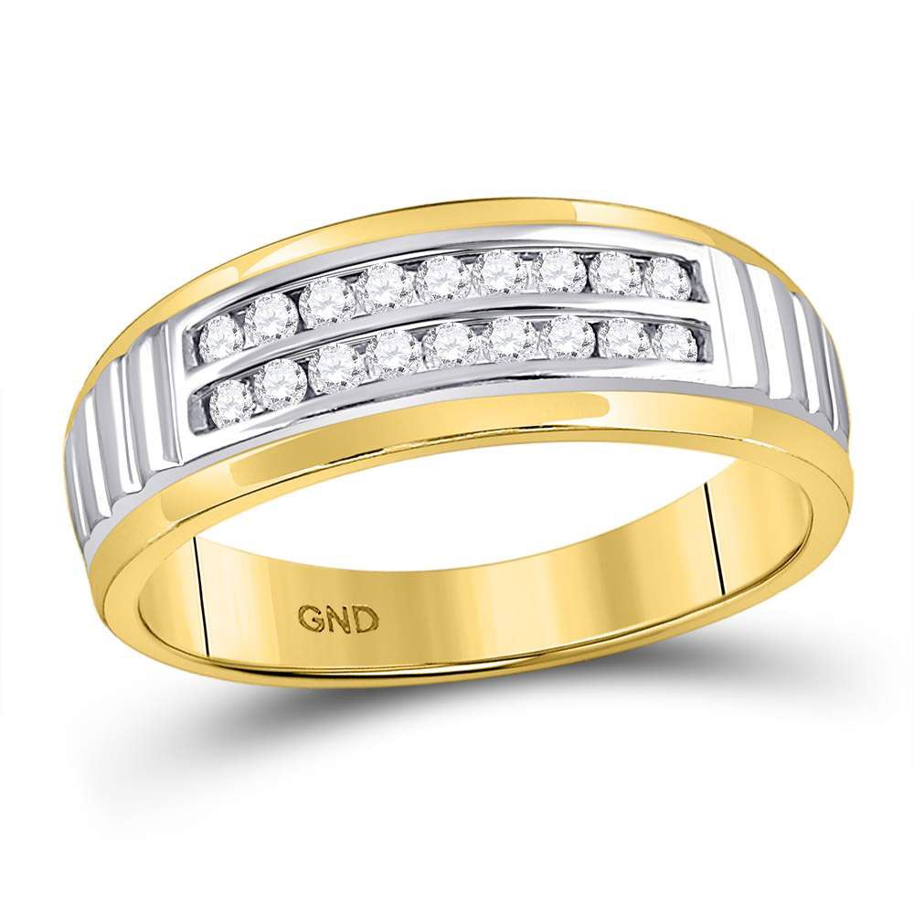 14kt Two-tone Gold His & Hers Round Diamond Cluster Matching Bridal Wedding Ring Band Set 3/4 Cttw