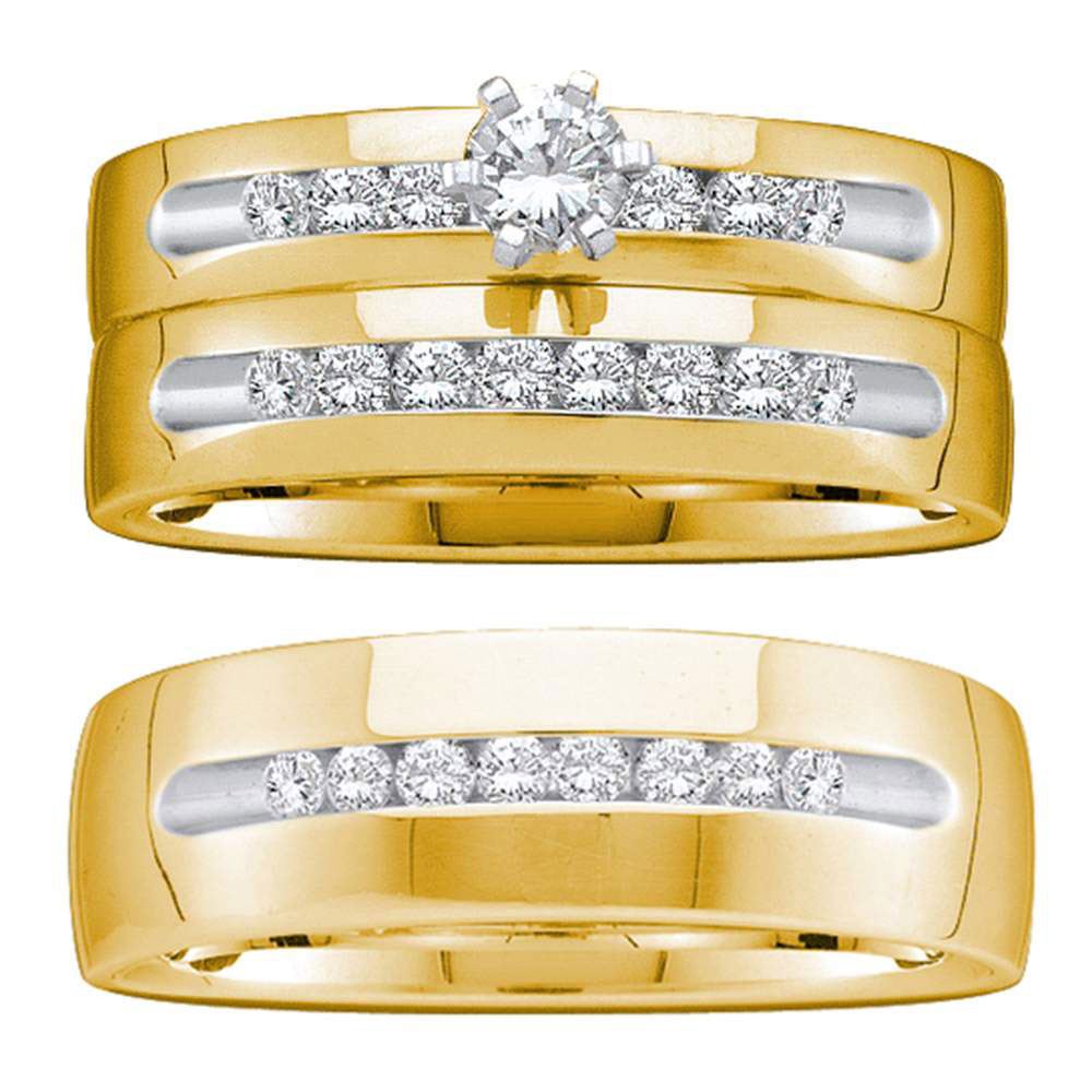 REF-166N9A - 3/4 CTW His Hers Round Diamond Solitaire Matching Wedding Set 14kt Yellow Gold - REF-166N9A
