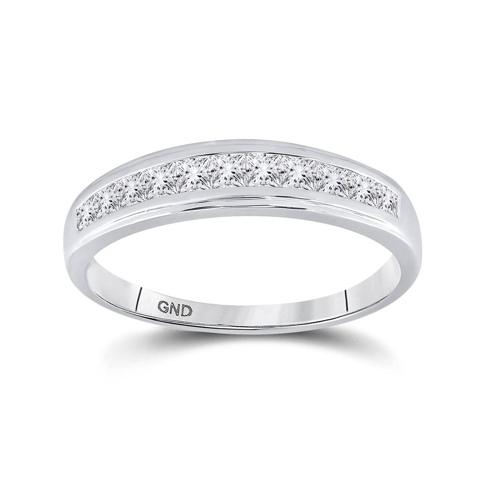 REF-54V5Y - 3/4 CTW Mens Princess Diamond Single Row Wedding Band Ring 10kt White Gold - REF-54V5Y