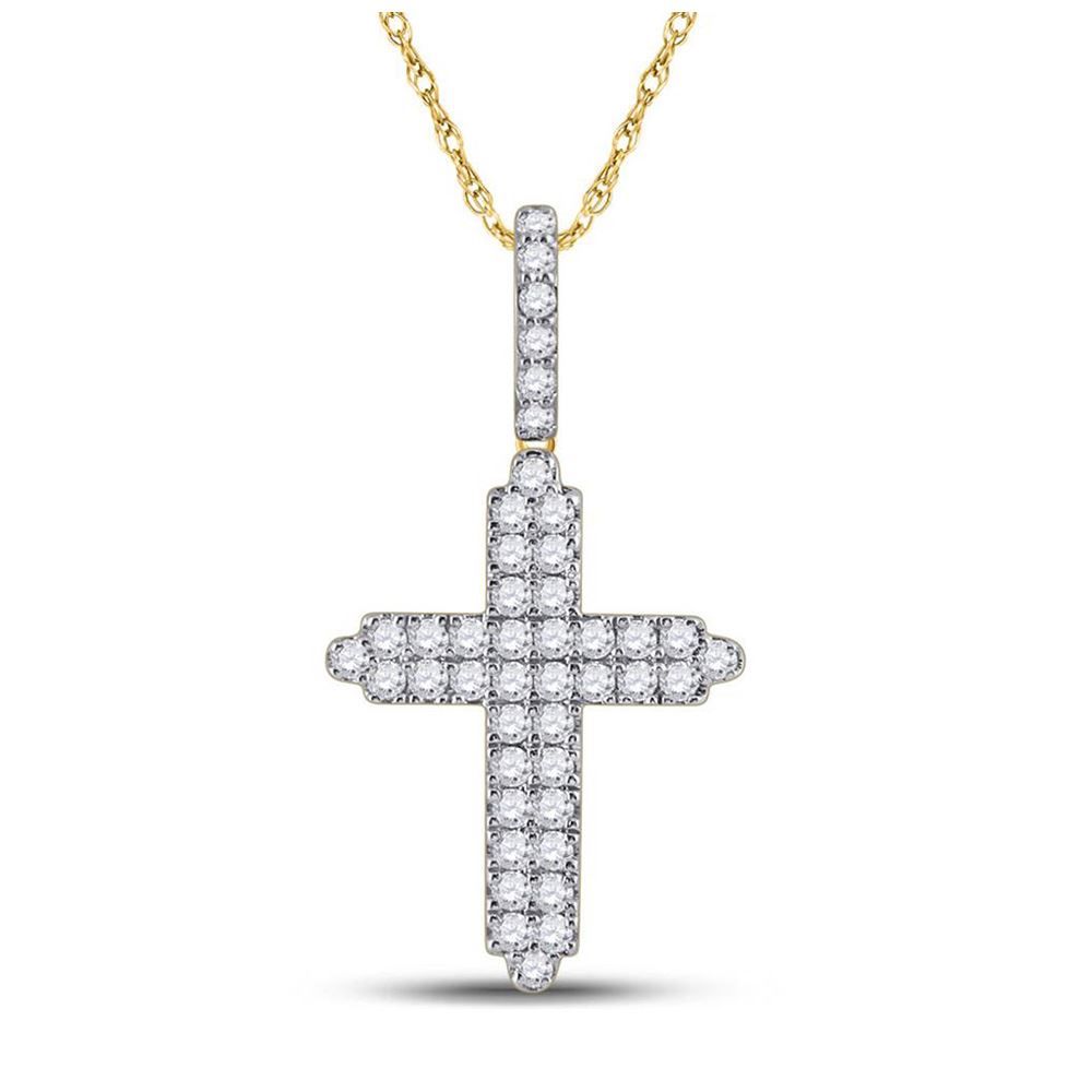REF-58M5F - 3/4 CTW Mens Round Diamond Cross Charm Pendant 14kt Yellow Gold - REF-58M5F