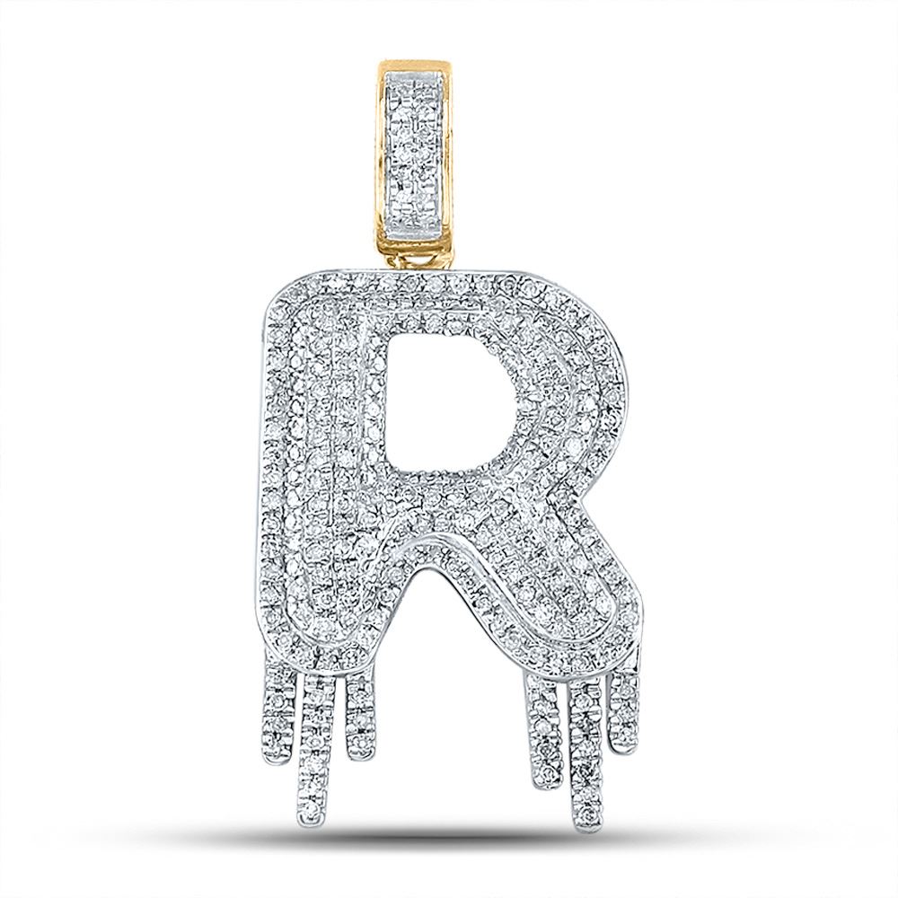REF-51X8T - 3/4 CTW Mens Round Diamond Dripping R Letter Charm Pendant 10kt Yellow Gold - REF-51X8T