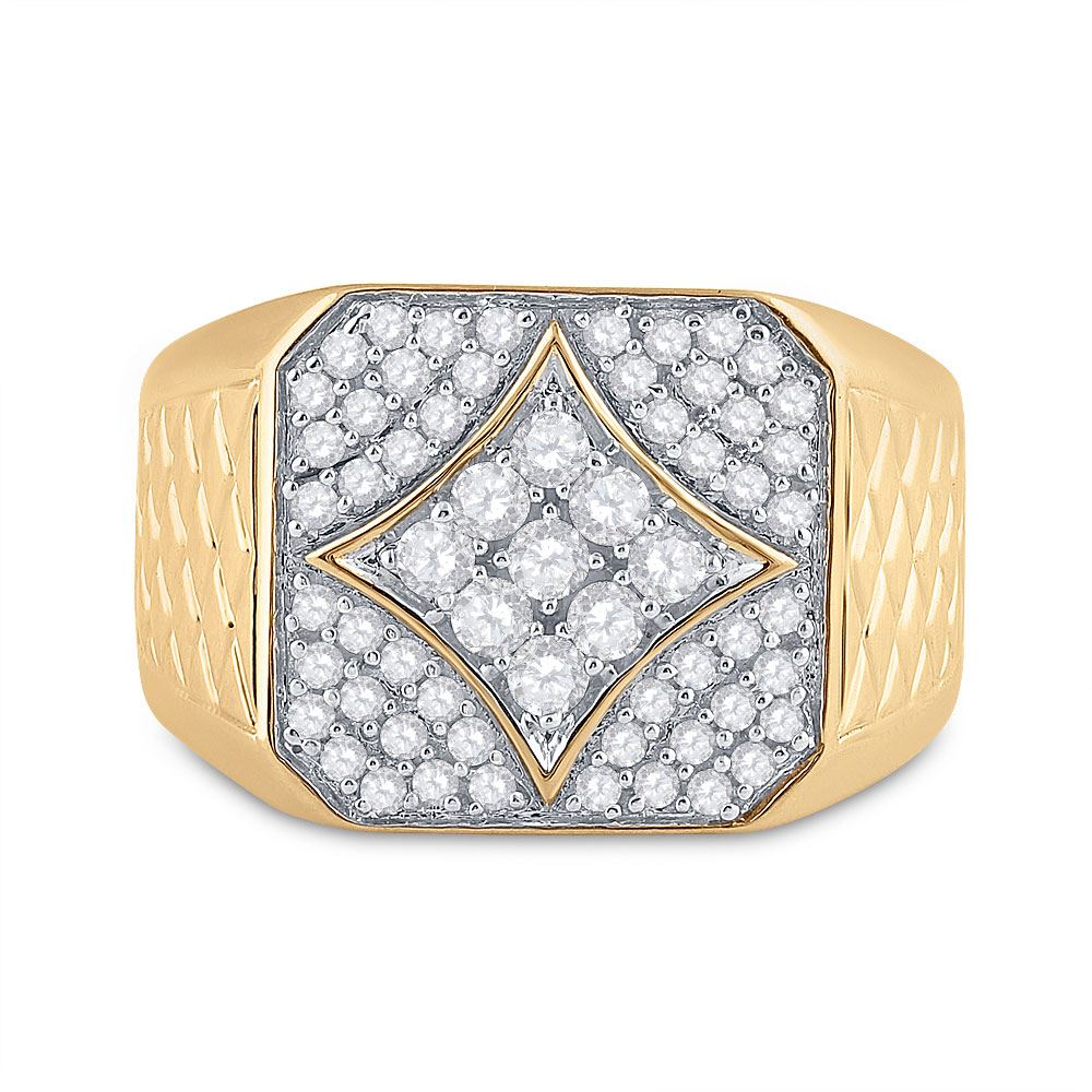 10kt Yellow Gold Mens Round Diamond Square Cluster Textured Ring 3/4 Cttw
