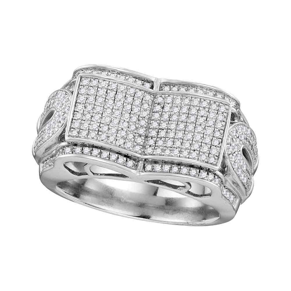 10kt White Gold Mens Round Diamond Symmetrical Concave Rectangle Cluster Ring 3/4 Cttw