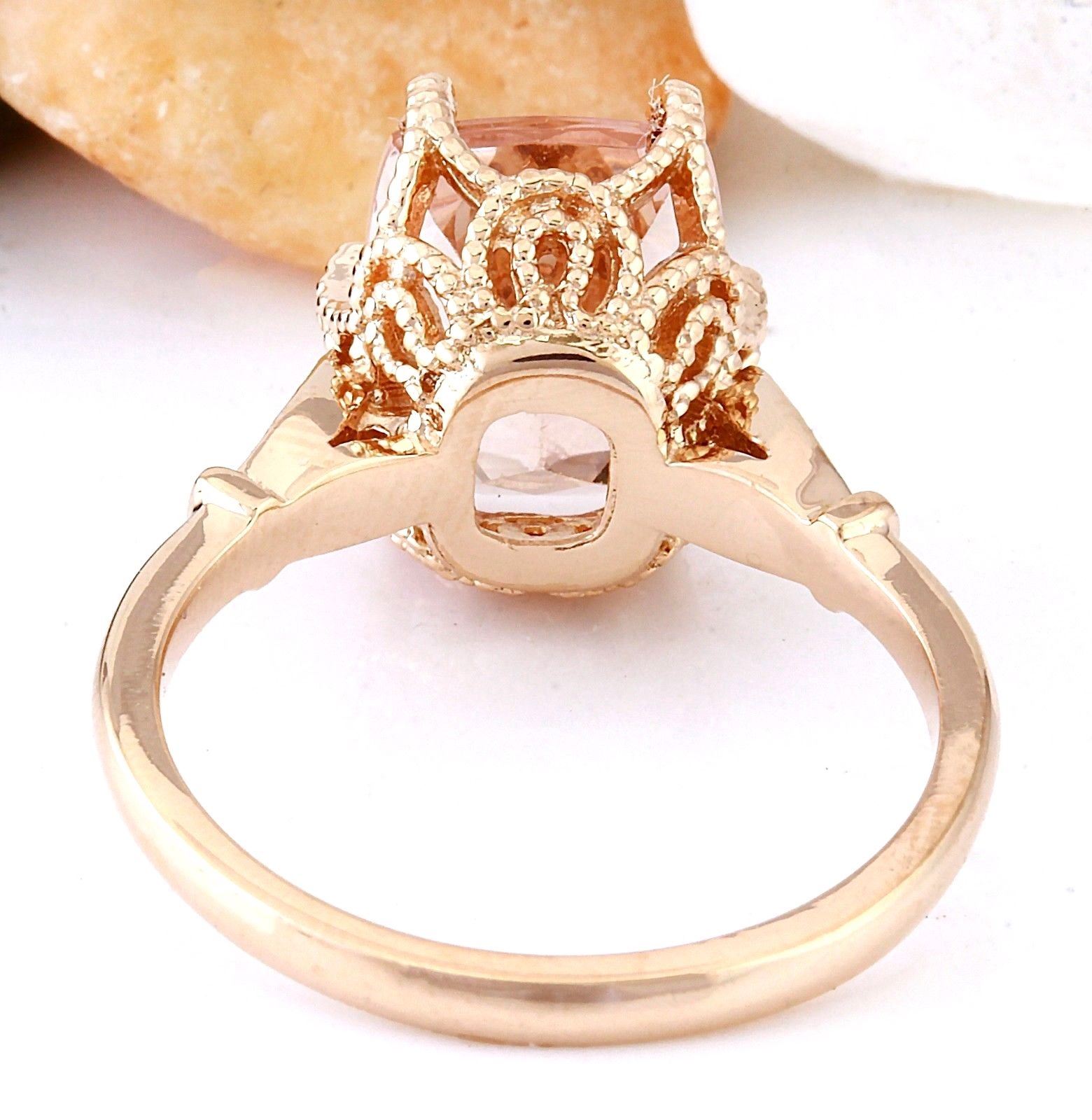 3.4 Carat Natural Morganite 14K Solid Rose Gold Diamond Ring