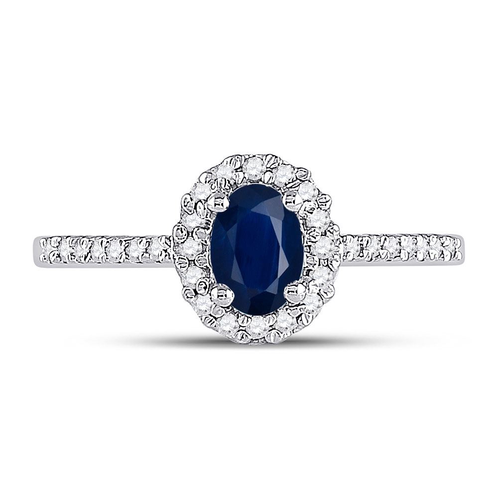 REF-16N8Y ---- 3/4 CTW Oval Lab-Created Blue Sapphire Solitaire Ring 10kt White Gold