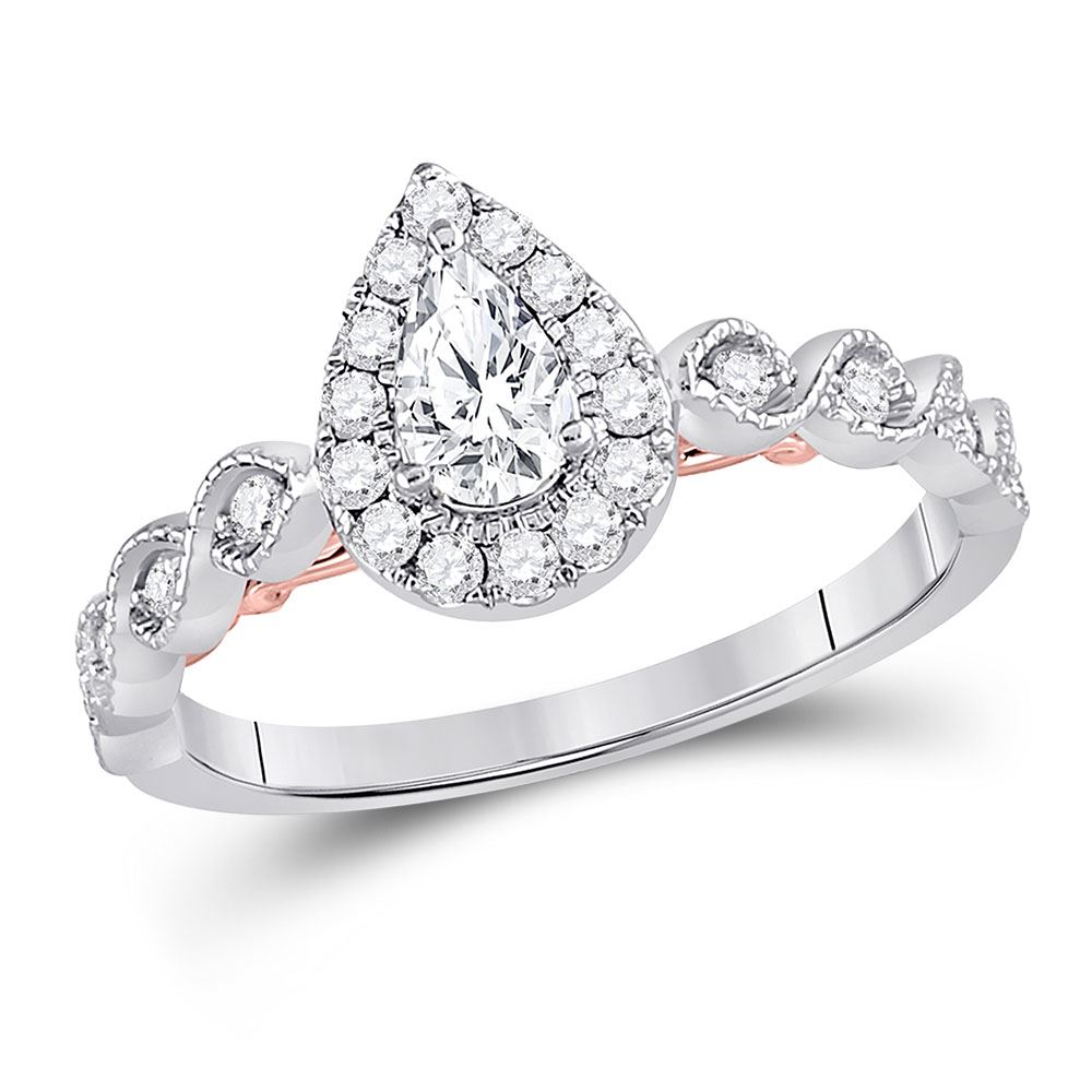 REF-104M4F - 3/4 CTW Pear Diamond Solitaire Bridal Wedding Engagement Ring 14kt Two-tone Gold - REF-104M4F