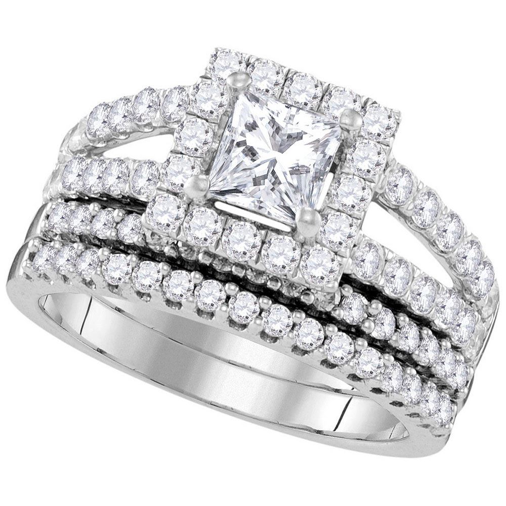 REF-105N6Y ---- 3/4 CTW Princess Diamond Bridal Wedding Engagement Ring 14kt White Gold