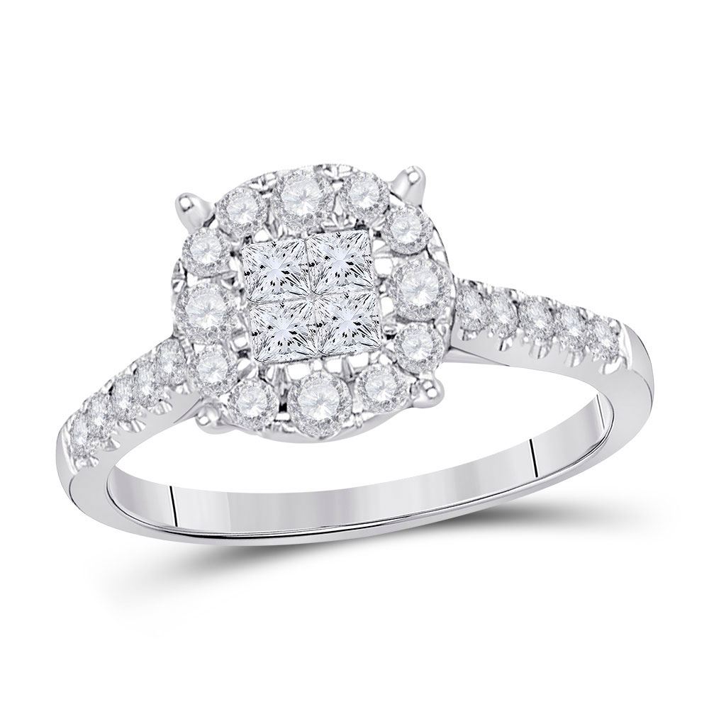14kt White Gold Womens Princess Diamond Cluster Bridal Wedding Engagement Ring 3/4 Cttw