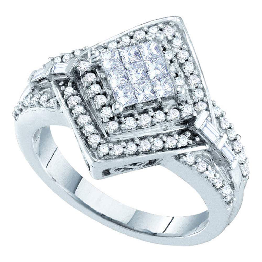 REF-81A2M - 3/4 CTW Princess Diamond Cluster Bridal Wedding Engagement Ring 14kt White Gold - REF-81A2M