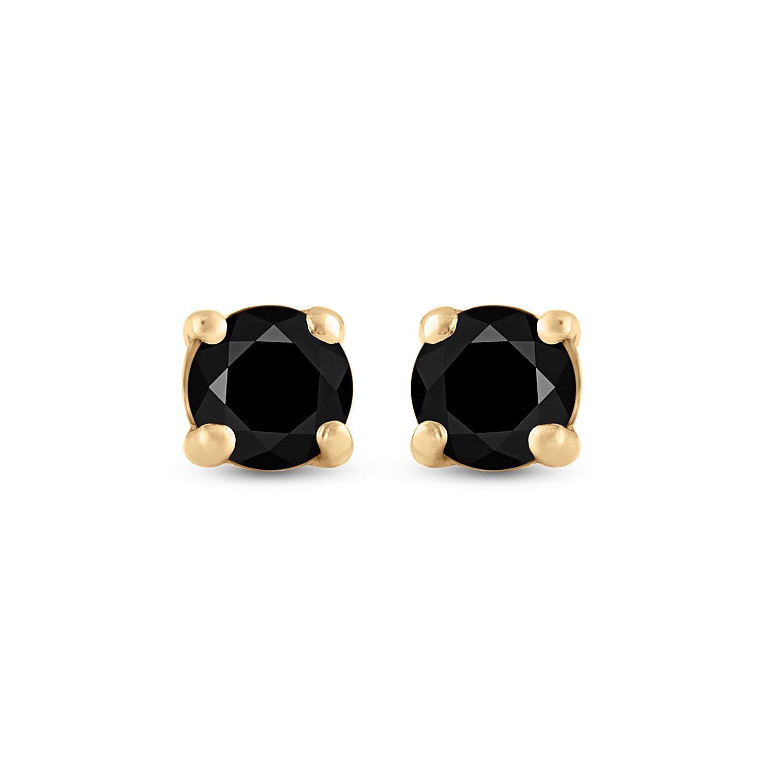 REF-14A4N ---- 3/4 CTW Round Black Color Enhanced Diamond Solitaire Earrings 10kt Yellow Gold