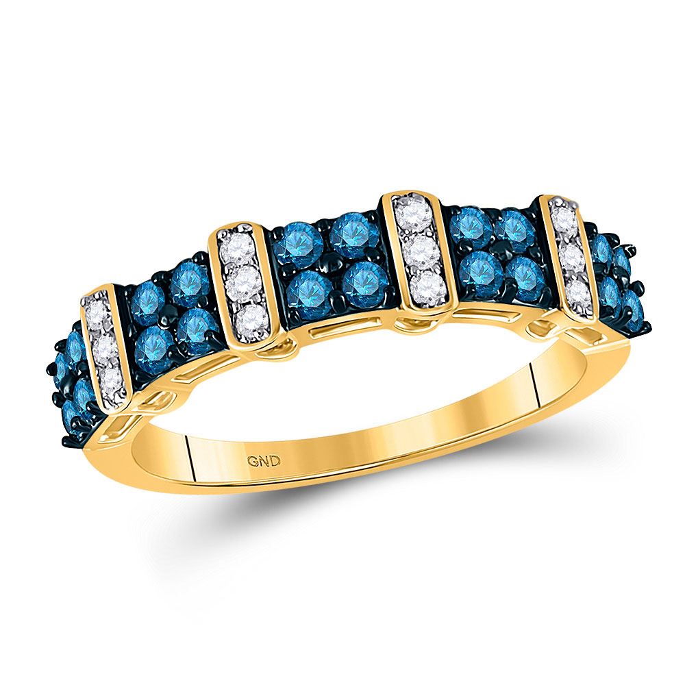 10kt Yellow Gold Womens Round Blue Color Enhanced Diamond Band Ring 3/4 Cttw