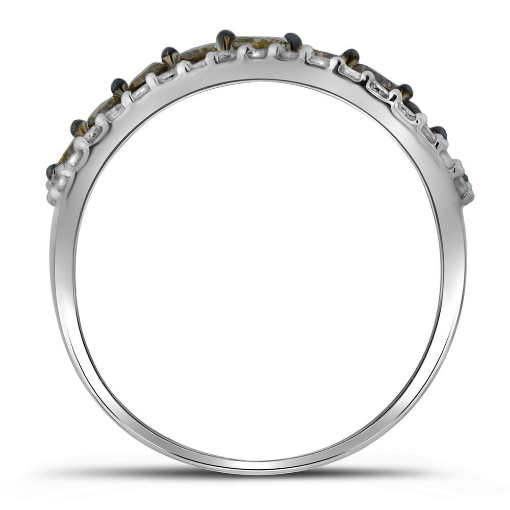 10kt White Gold Womens Round Brown Diamond Contoured Band 3/4 Cttw