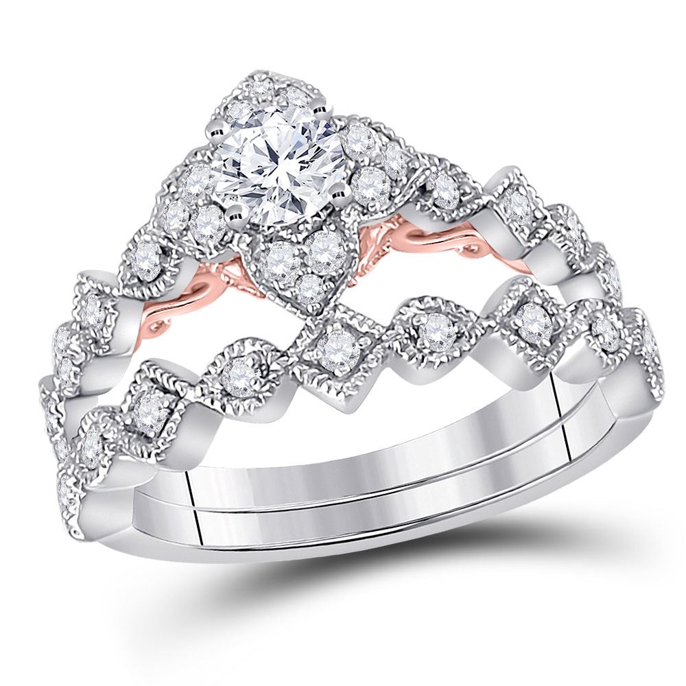 14kt Two-tone Gold Womens Round Diamond Bridal Wedding Engagement Ring Band Set 5/8 Cttw (Certified)