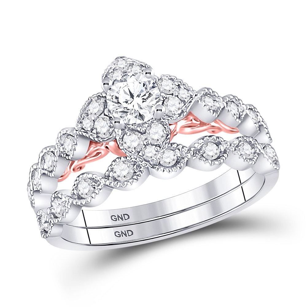 14kt Two-tone Gold Womens Round Diamond Bridal Wedding Engagement Ring Band Set 3/4 Cttw (Certified)