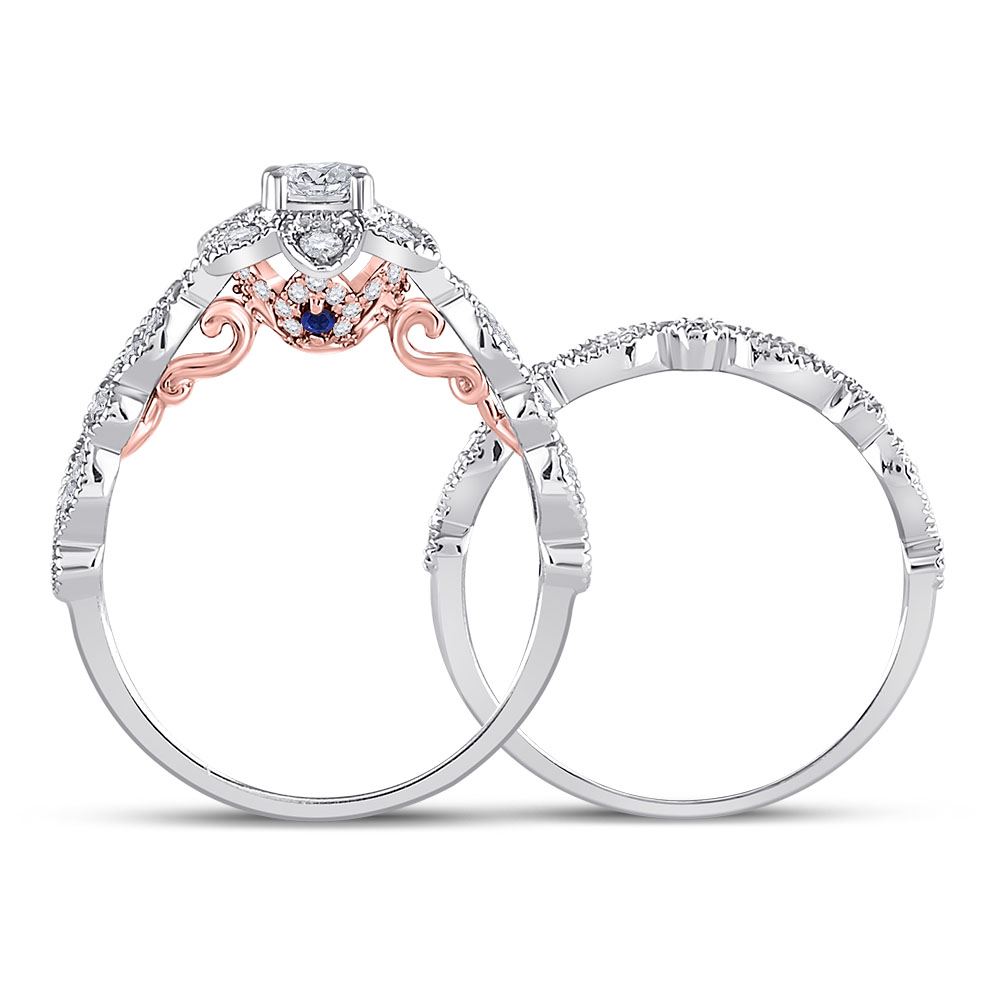 14kt Two-tone Gold Womens Round Diamond Flower Bridal Wedding Engagement Ring Band Set 3/4 Cttw (Certified)