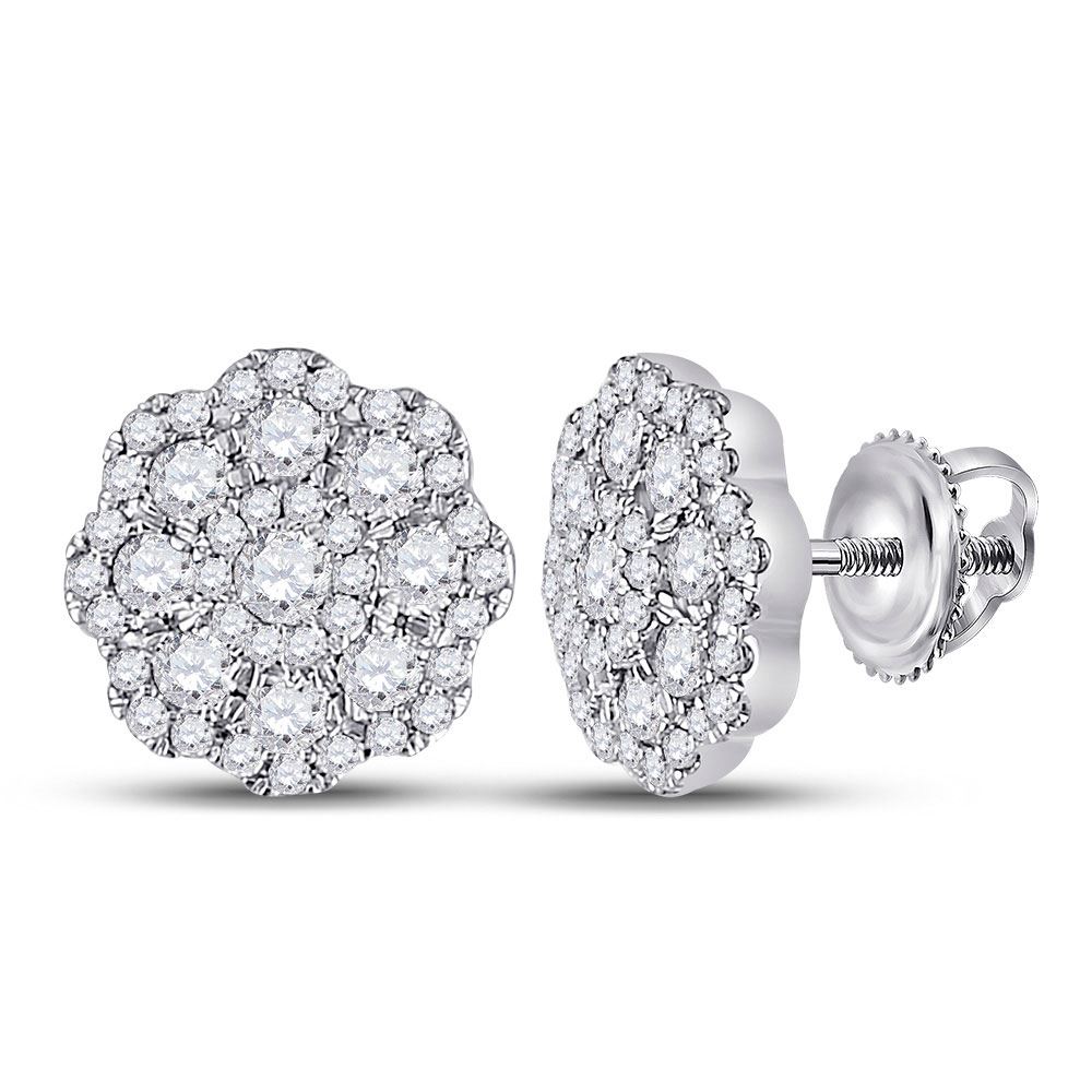 14kt White Gold Womens Round Diamond Flower Cluster Earrings 3/4 Cttw