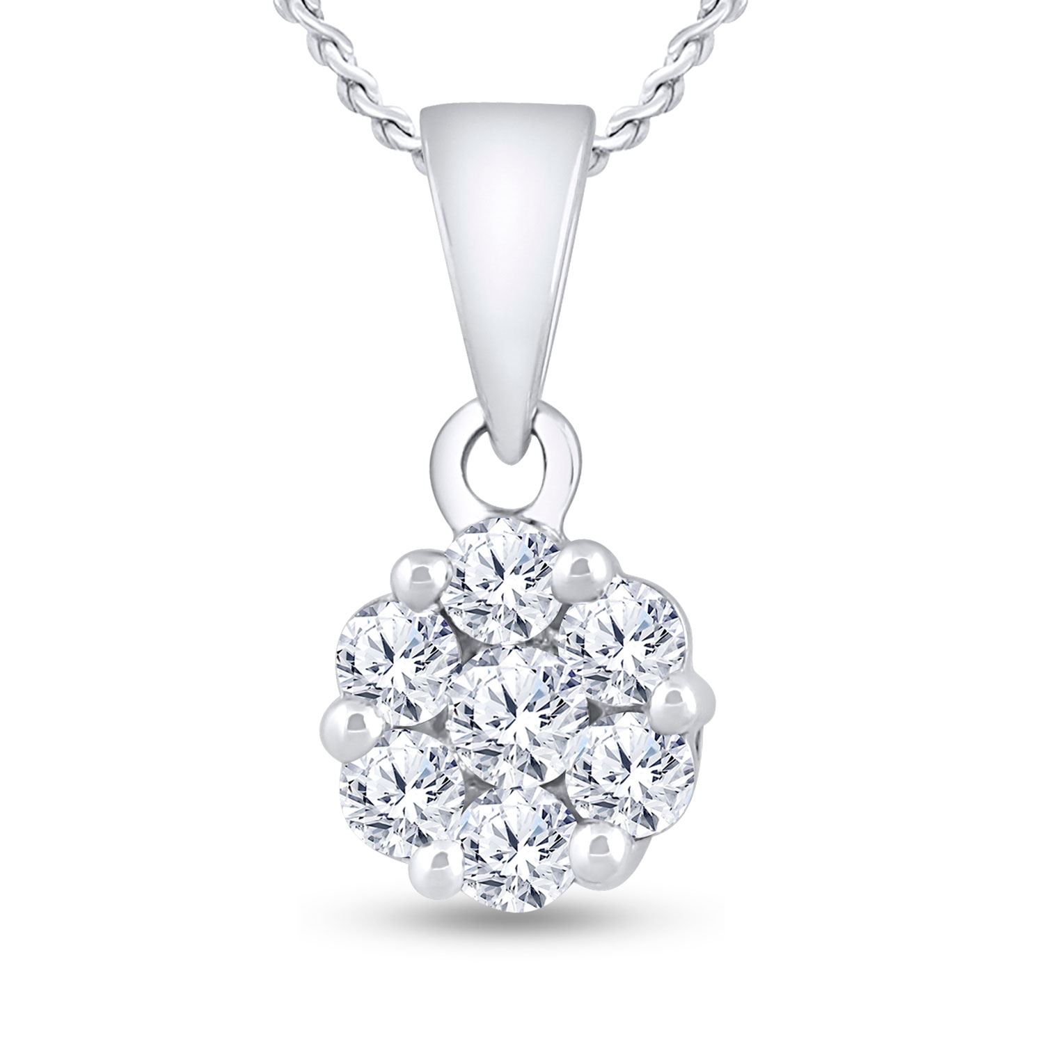 REF-60H3W ---- 3/4 CTW Round Diamond Flower Cluster Pendant 14kt White Gold