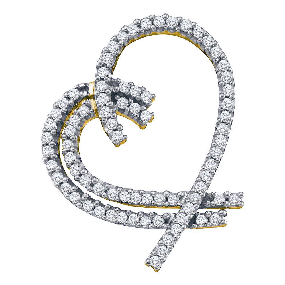 14kt Yellow Gold Womens Round Diamond Heart Outline Pendant 3/4 Cttw