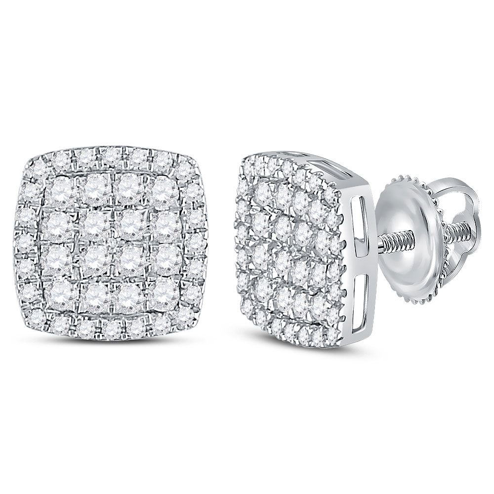 REF-47W9F ---- 3/4 CTW Round Diamond Square Cluster Earrings 14kt White Gold