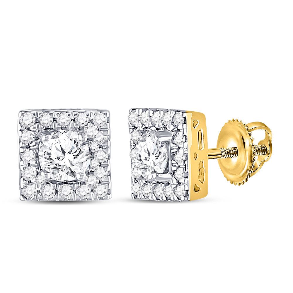 10kt Yellow Gold Womens Round Diamond Square Halo Earrings 3/4 Cttw