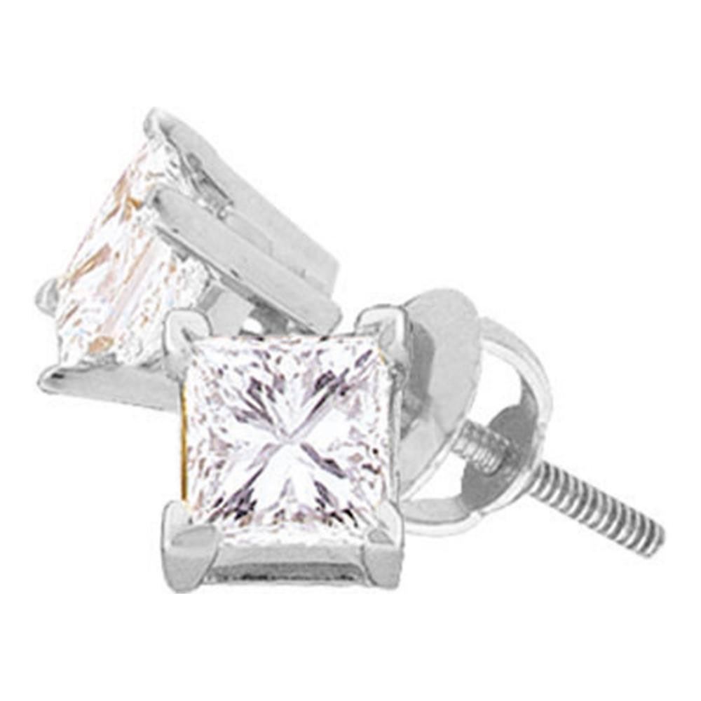 REF-85H3R - 3/4 CTW Womens Princess Diamond Solitaire Earrings 14kt White Gold - REF-85H3R