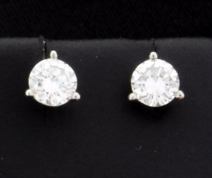 Very High Quality Diamonds - VS Clarity and G Color with excellent cut. Set in martini 3 prong settings in PLATINUM with platinum friction backs. . 1.3g