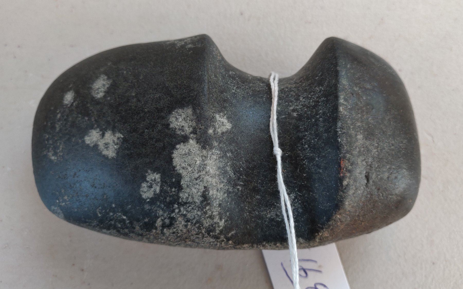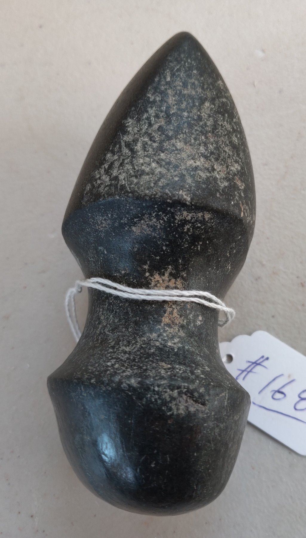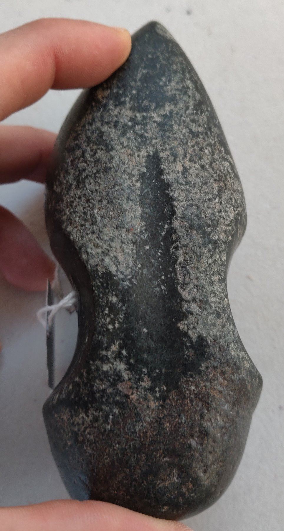 3/4 Groove Stone Axe, pre-historic item. Made of basalt, made of 5" x 2 1/2" x 2 1/2". Hohokam, Ajo, Pima County, Arizona. Flute on bottom, deep groove. Condition: Good, polished item, see images. Shipping: $24.50 w/insurance and signature, due to value.