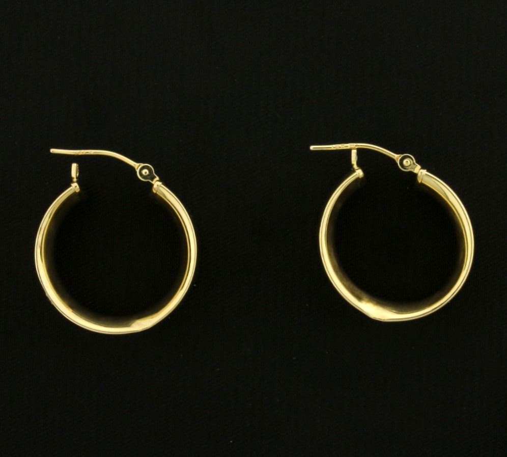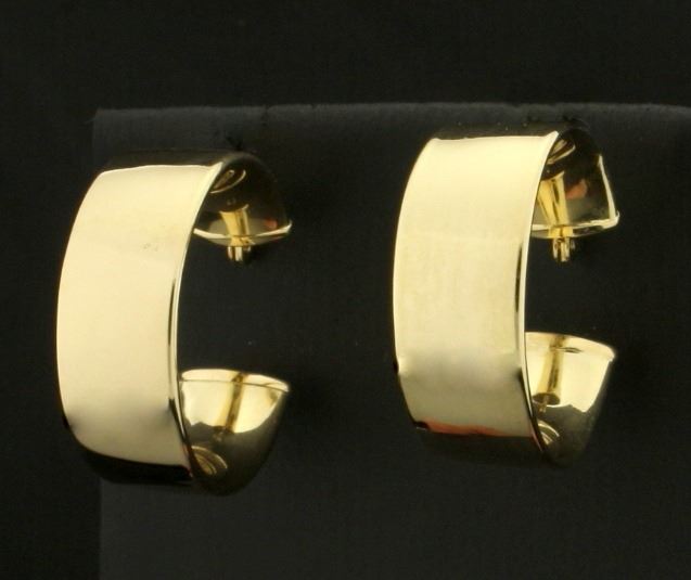 In 14k yellow gold. 3/4" diameter, 7mm wide, With hatch openings. 2.4g.
