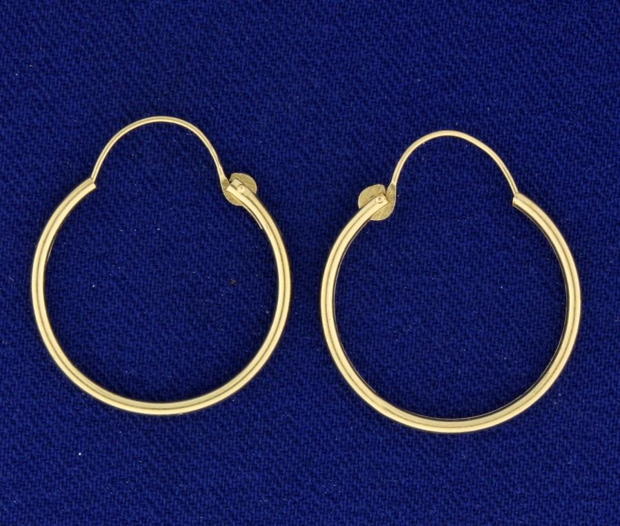 In 14k yellow gold with a 3/4 inch diameter. 0.6g.