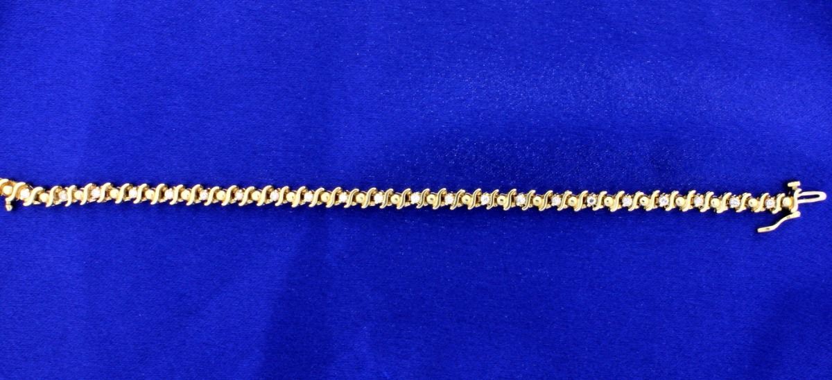 This beautiful diamond bracelet is set in 14k yellow gold! There is a total of 3/4 of a cart of SI clarity and I-J-K color diamonds, 23 brilliant cut diamonds. 15.4g