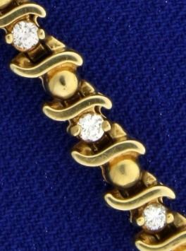 This beautiful diamond bracelet is set in 14k yellow gold. There is a total of 3/4 ct of high quality SI clarity and I color round brilliant diamonds. 7 3/8 inches long. 15.4g
