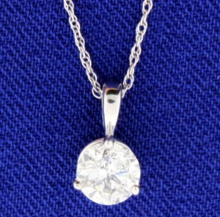This exquisite 14k white gold 3 prong Martini setting holds a stunning 3/4 carat brilliant cut, I1-2 clarity and H color, diamond…this diamond faces up white and has a lot of sparkle! The new chain is 18" long and is also 14k white gold. 1.0g