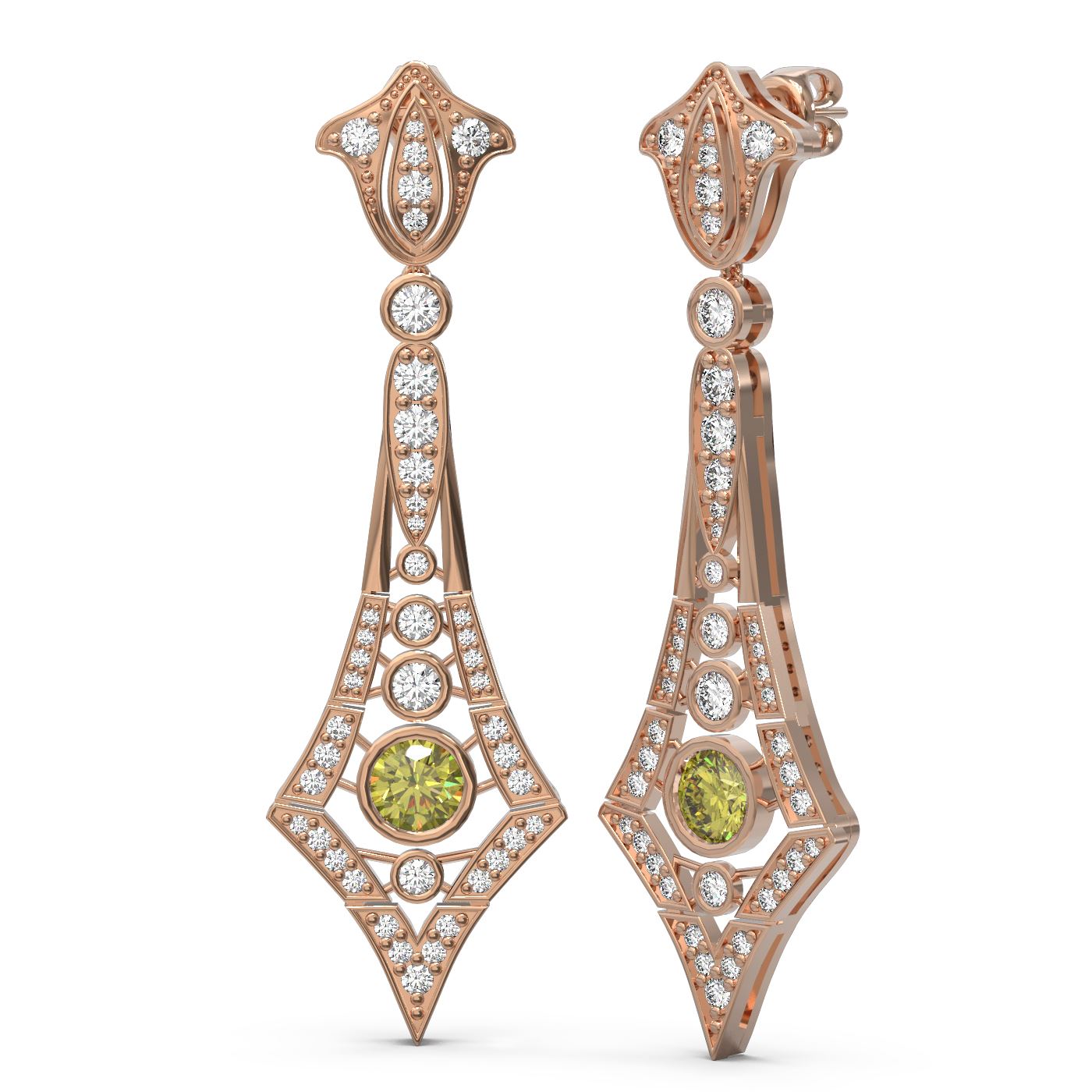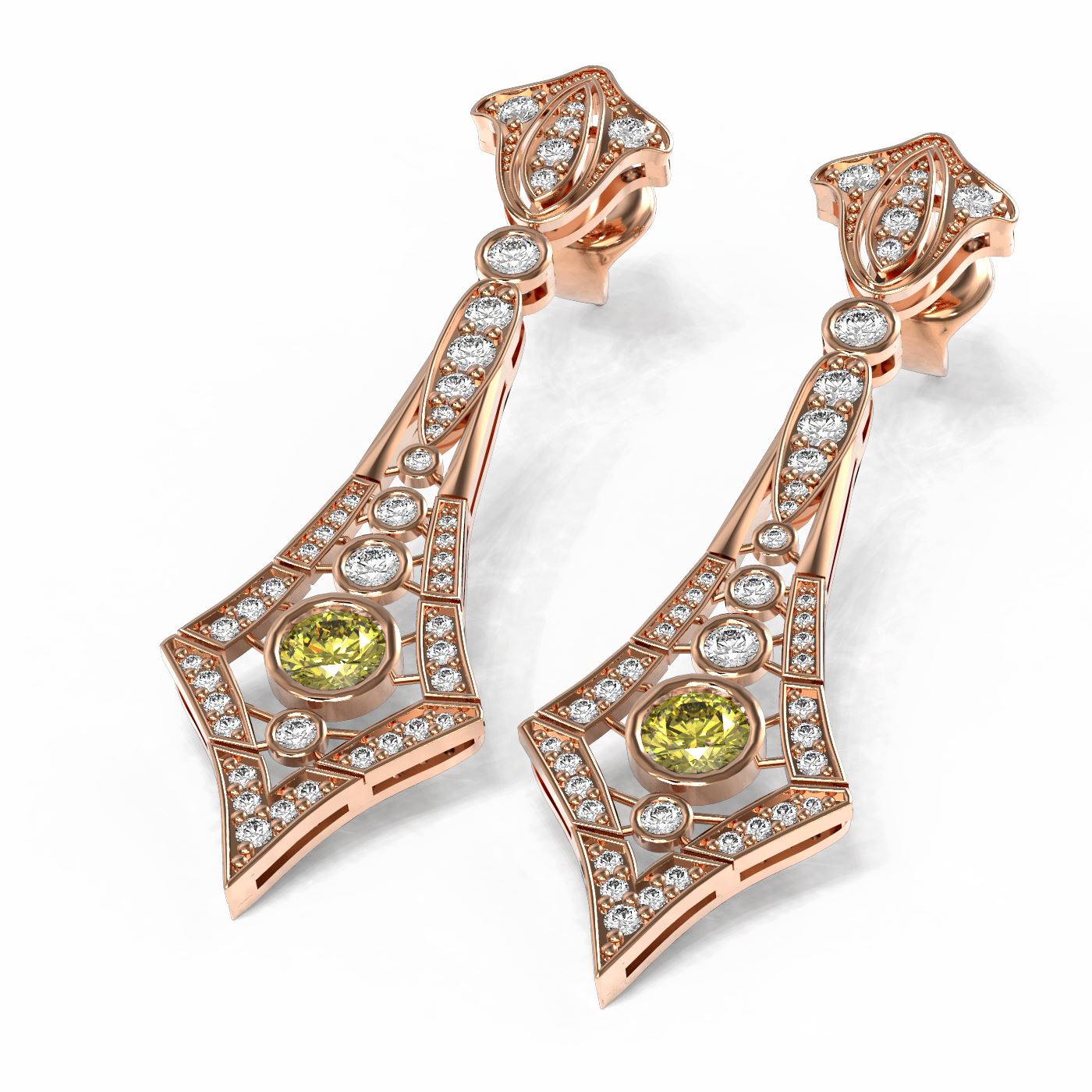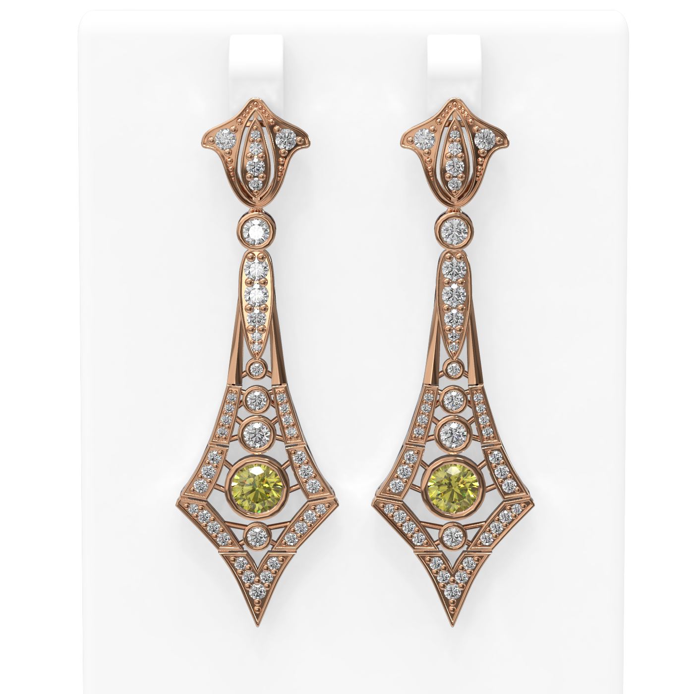 REF-352R9K - SKU: 56226 ---- 3.4 ctw Fancy Yellow Diamond Earrings 18K Rose Gold