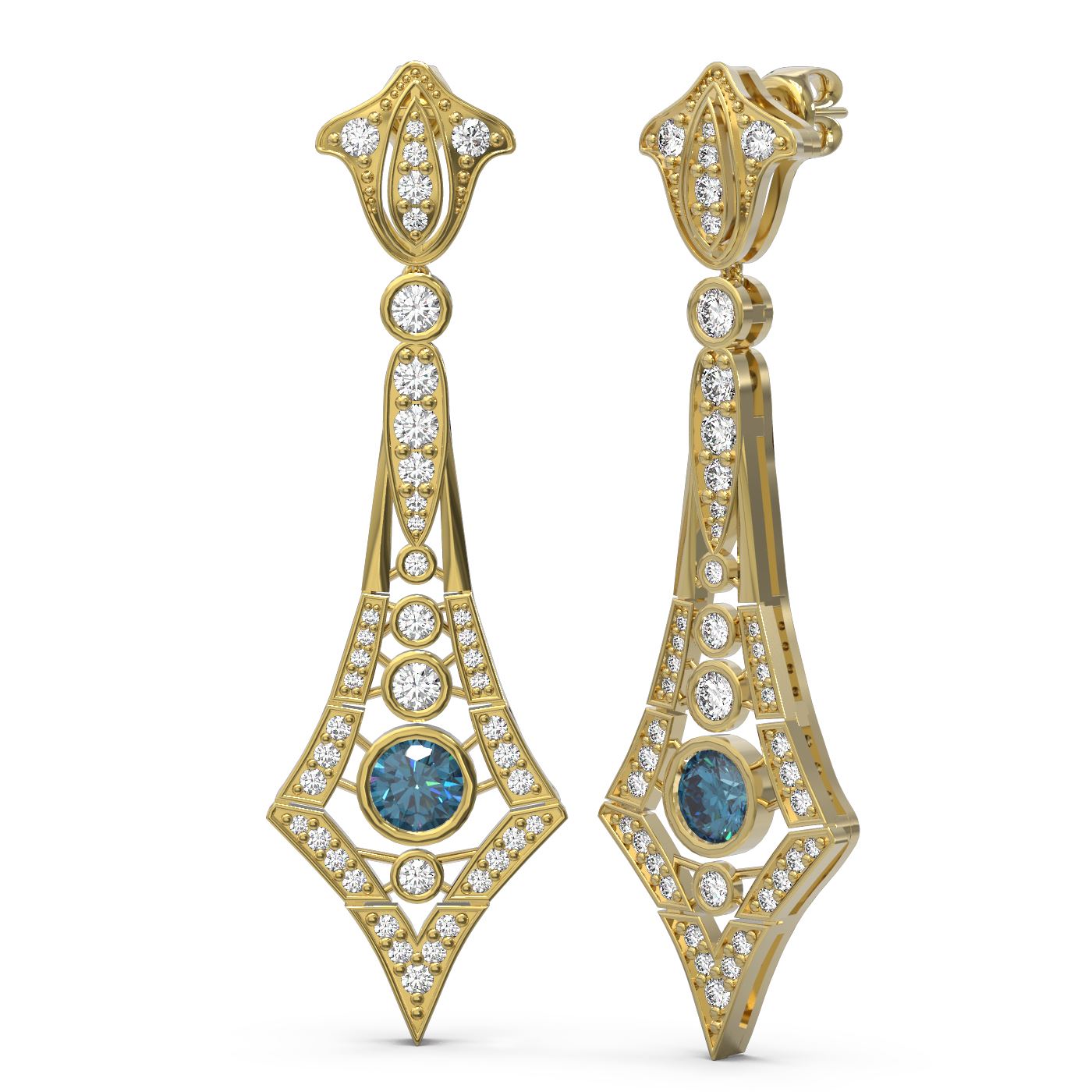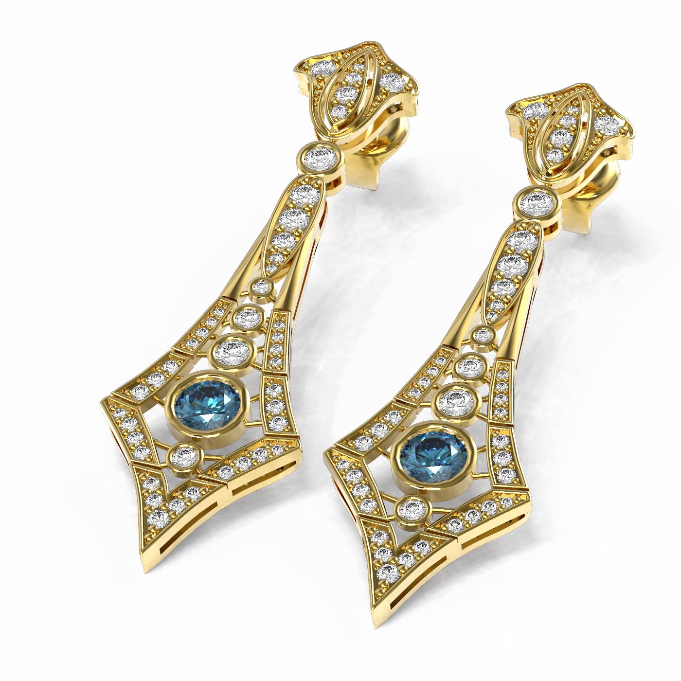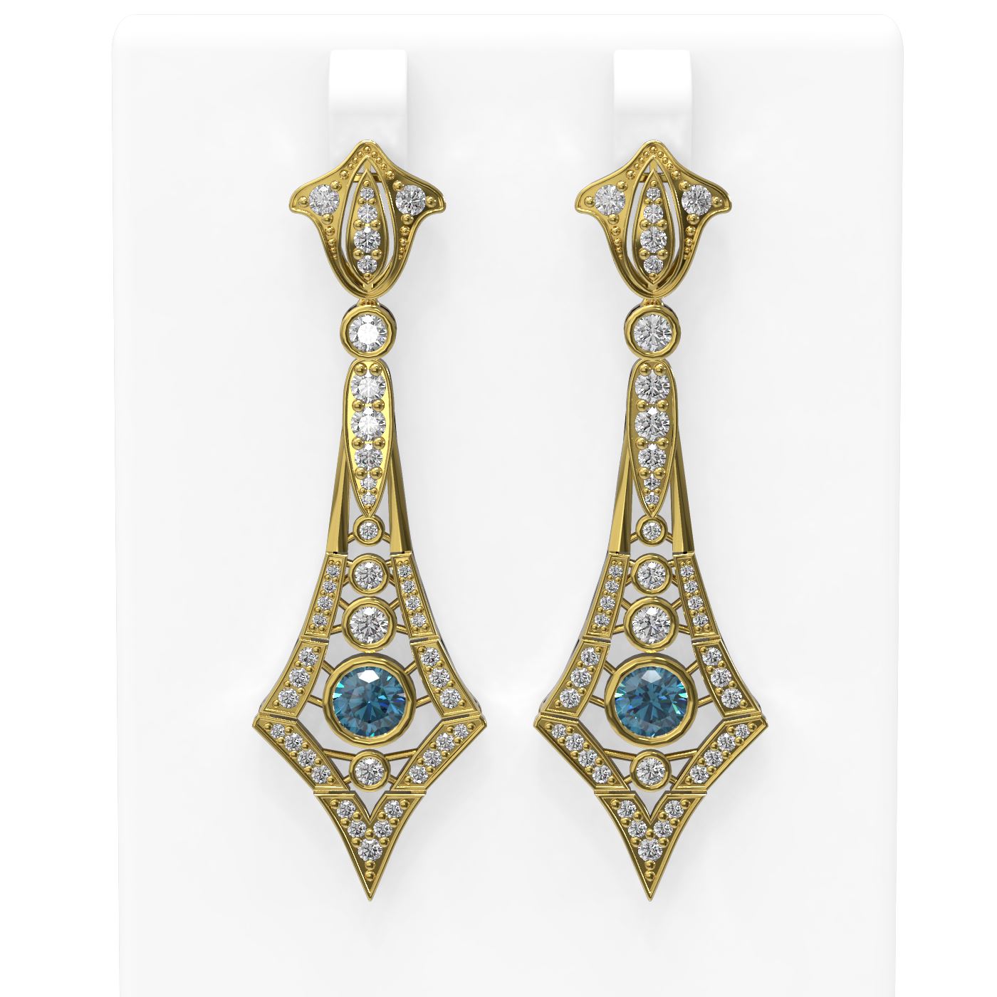 REF-303F8M - SKU: 56224 ---- 3.4 ctw Intense Blue Diamond Earrings 18K Yellow Gold