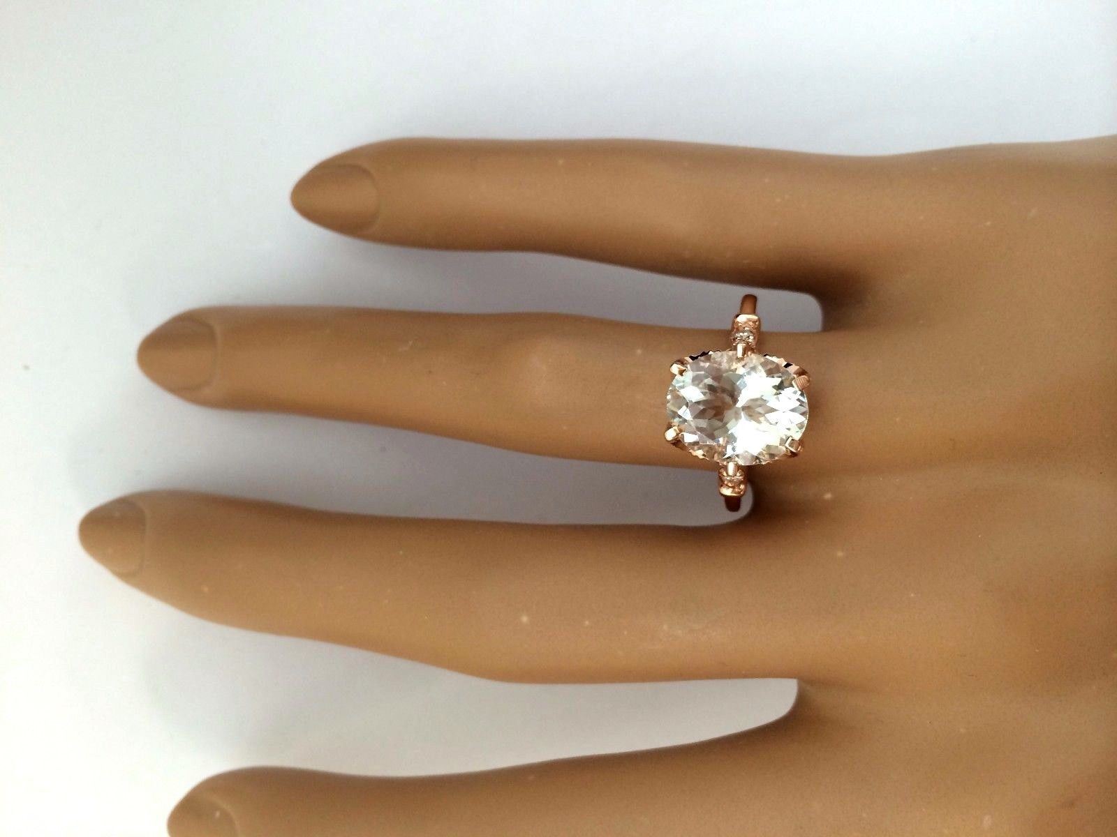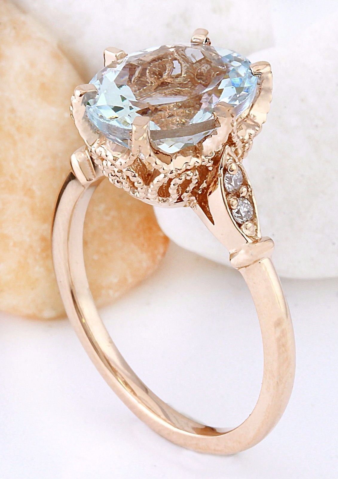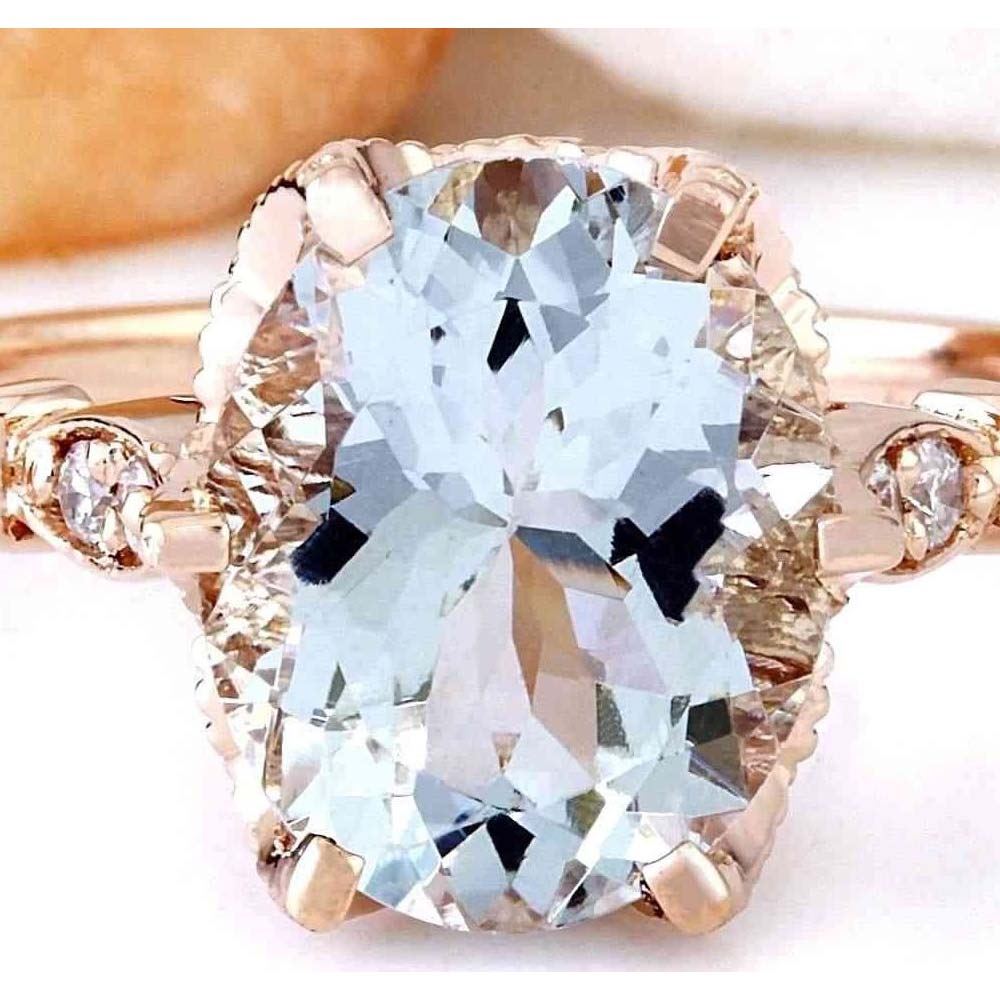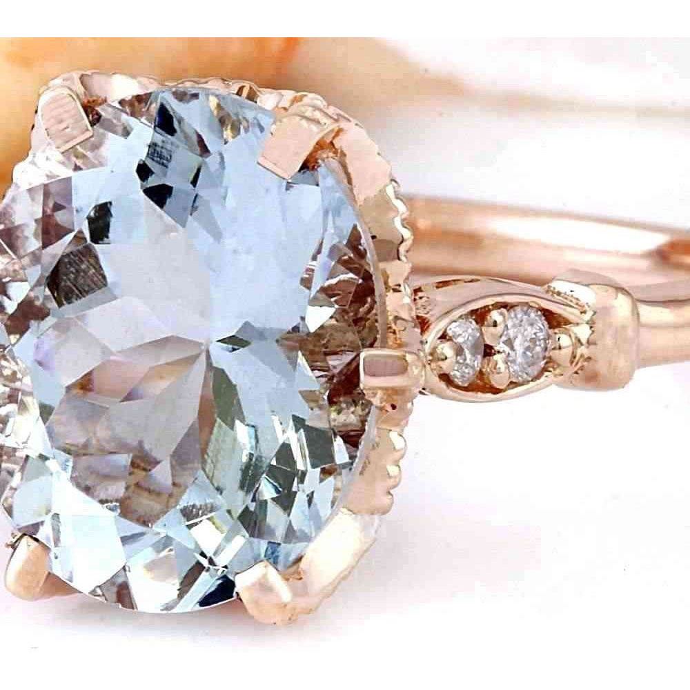 3.40 Carat Natural Aquamarine 14K Solid Rose Gold Diamond Ring