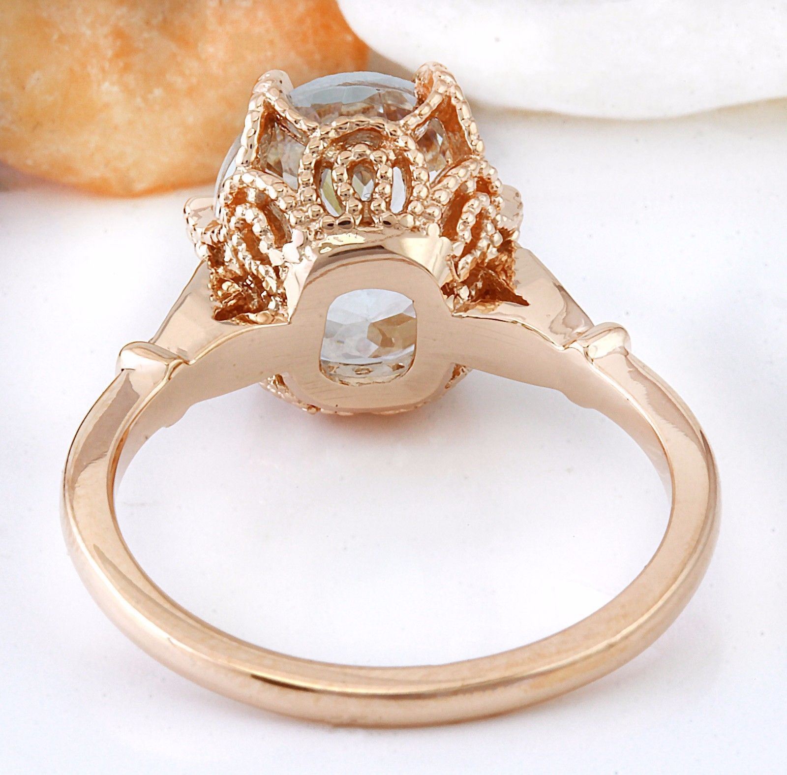 3.40 Carat Natural Aquamarine 14K Solid Rose Gold Diamond Ring